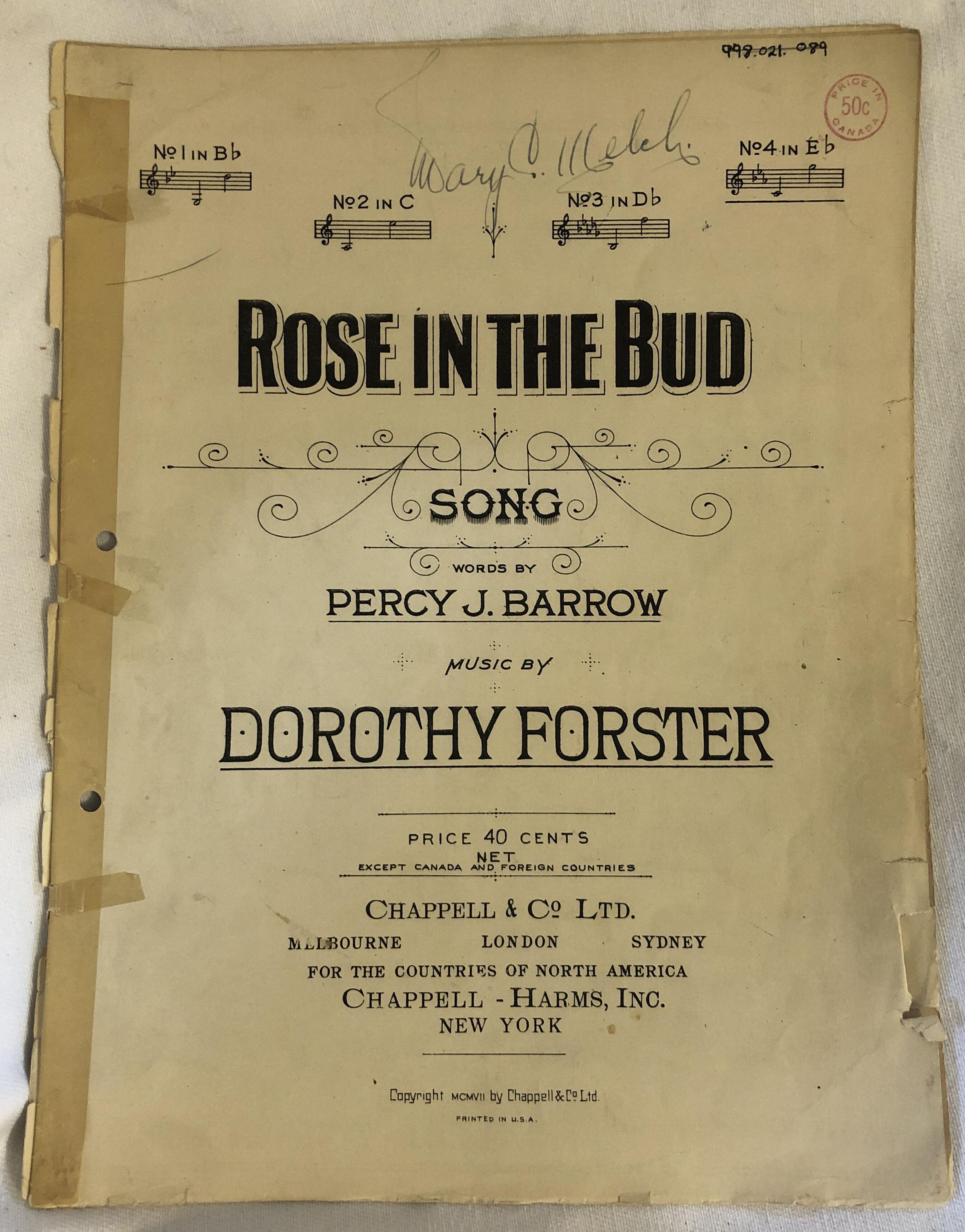 'Rose in the Bud' Sheet MusicEntry/Object ID