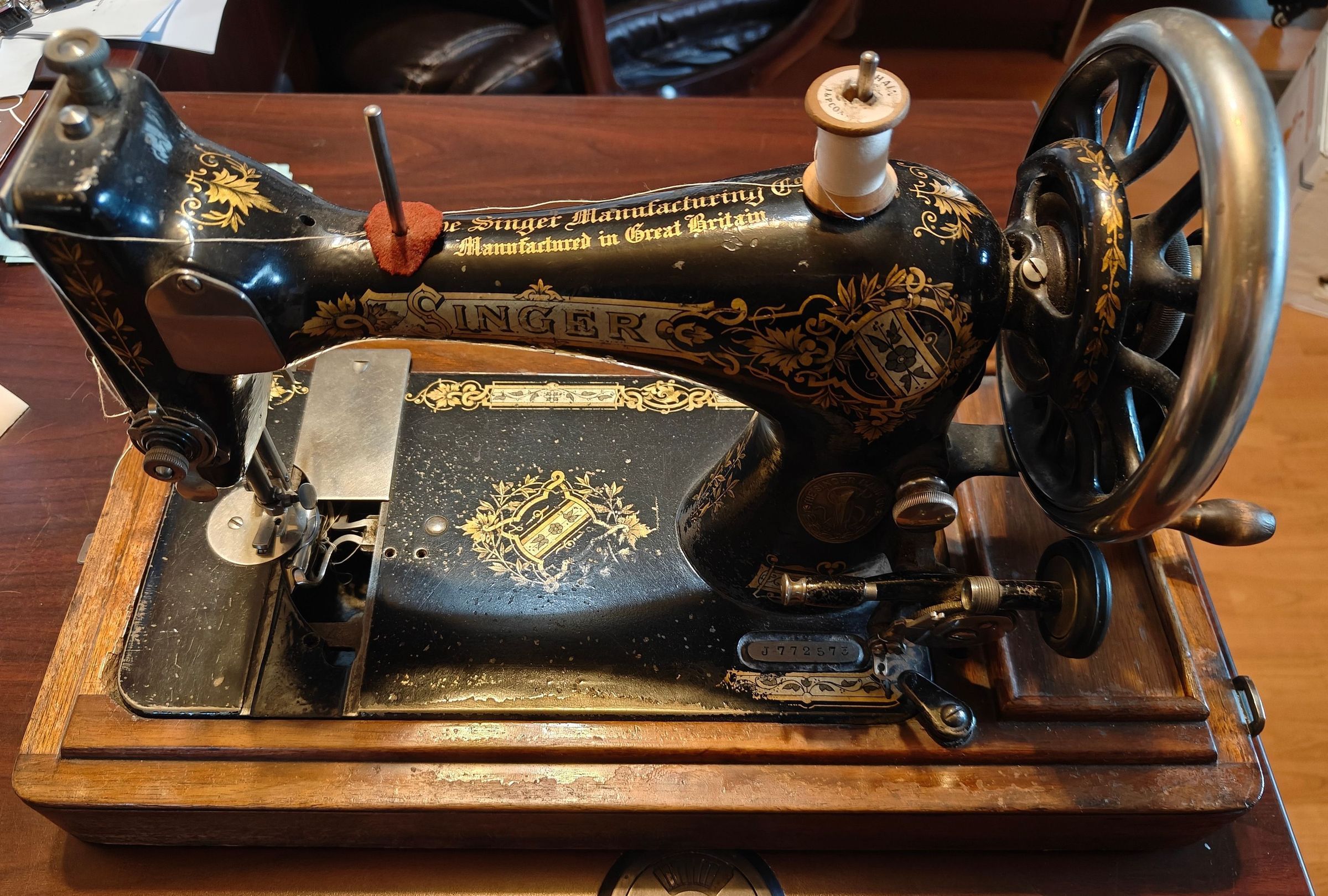 Hand sewing machine with cover (Mrs Black)