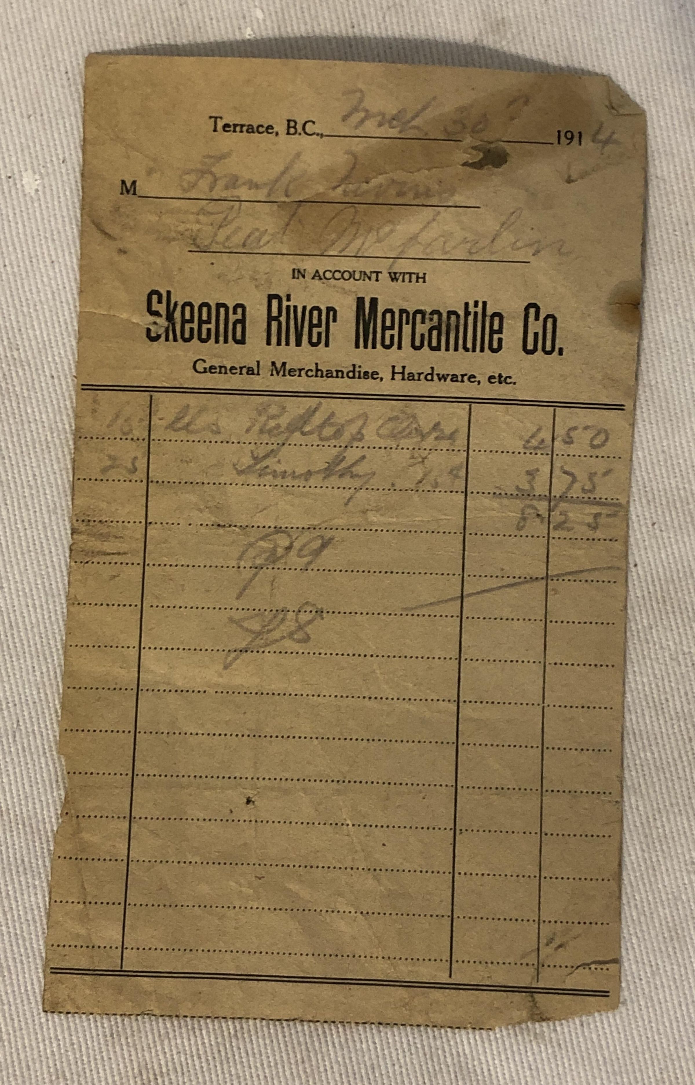 'Skeena River Mecantile Co 1914' ReceiptEntry/Object ID