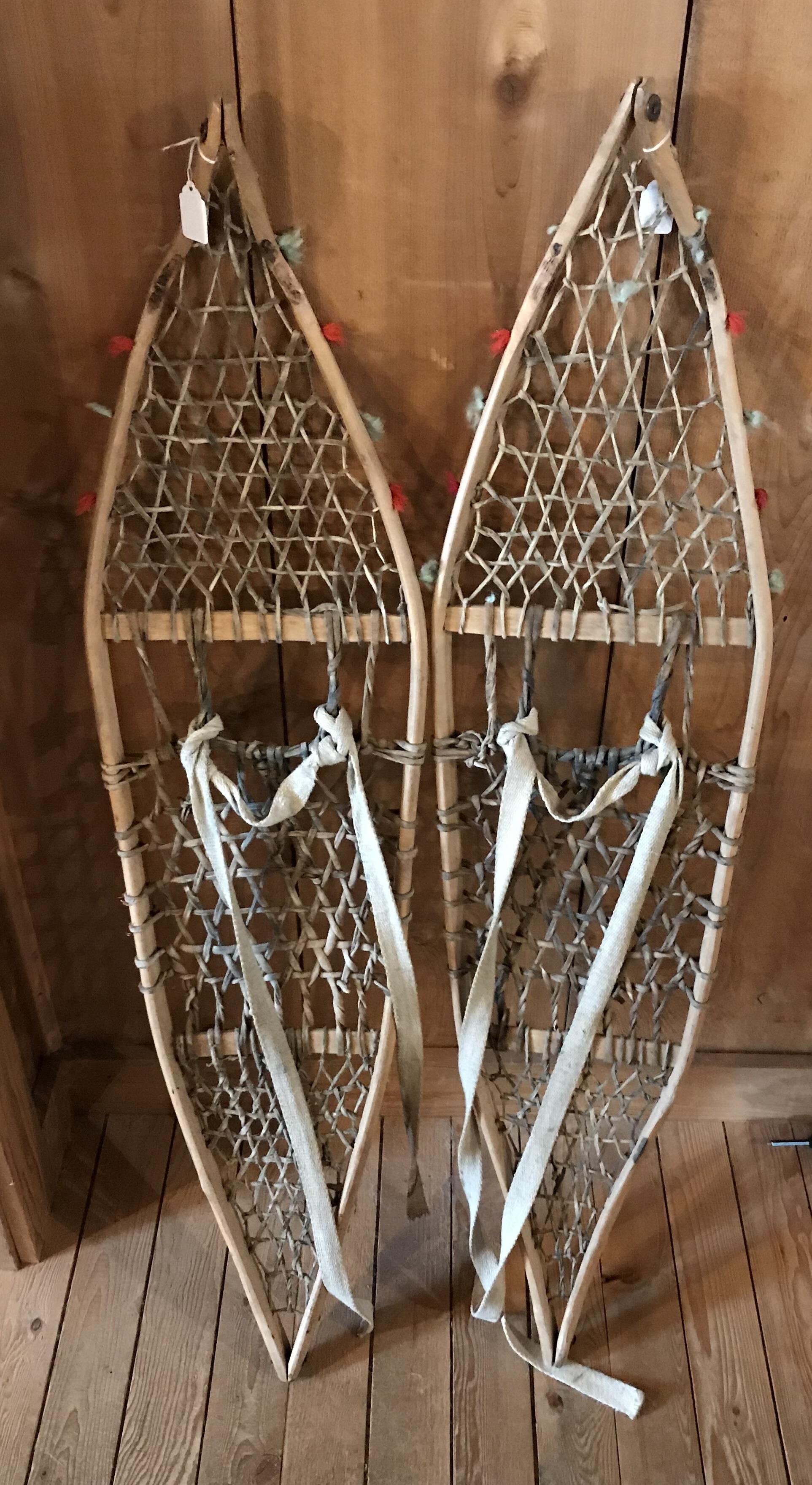 "This pair of snowshoes was made for Mrs.Emma Lindstrom in the early thirties by Jans Erlandsen, an old time trapper of the Remo area. He made snowshoes for many of the other local Remo residents as well.