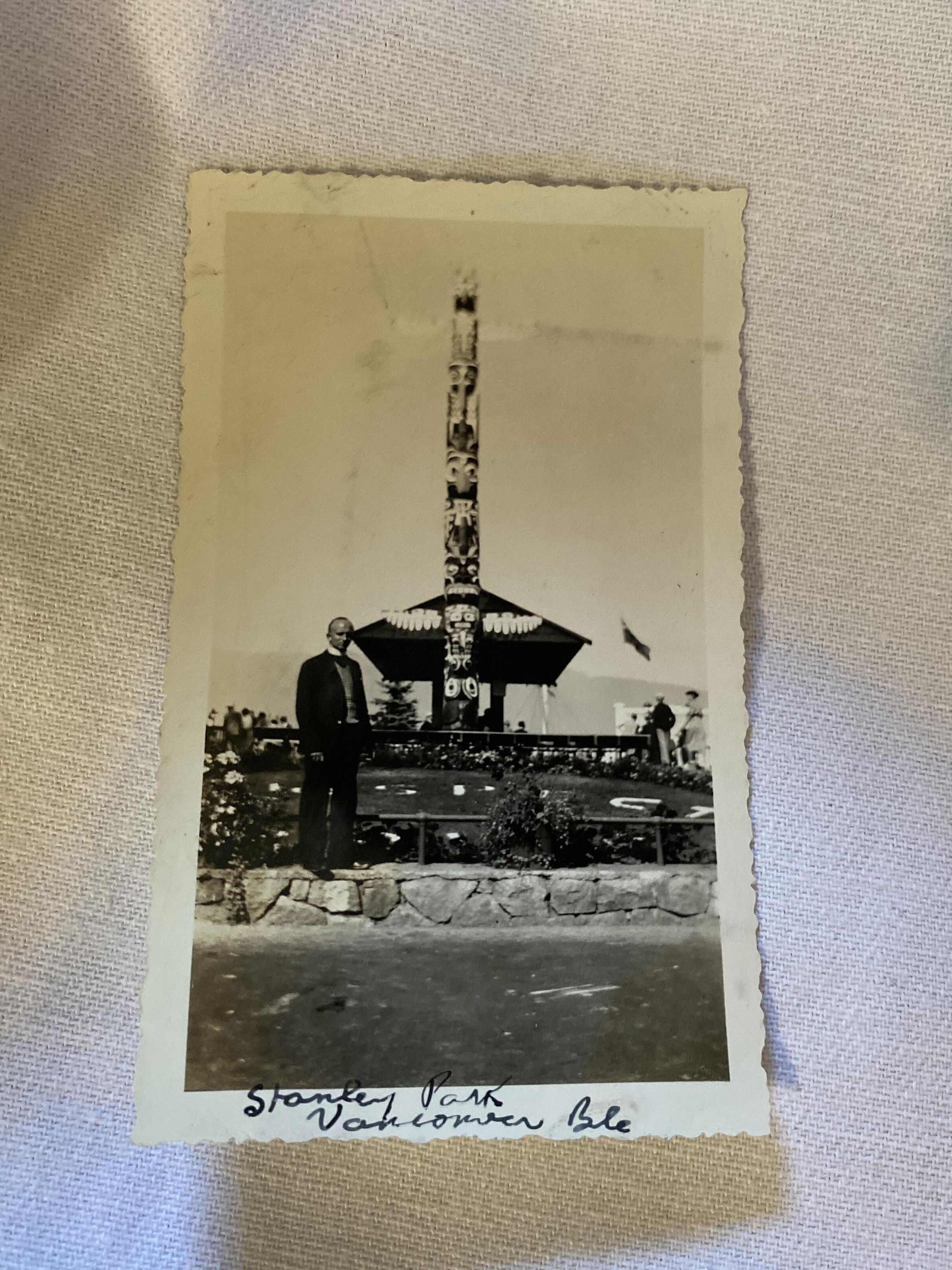 Photo of Minister in Stanley Park in front of a totem polePhotograph Details