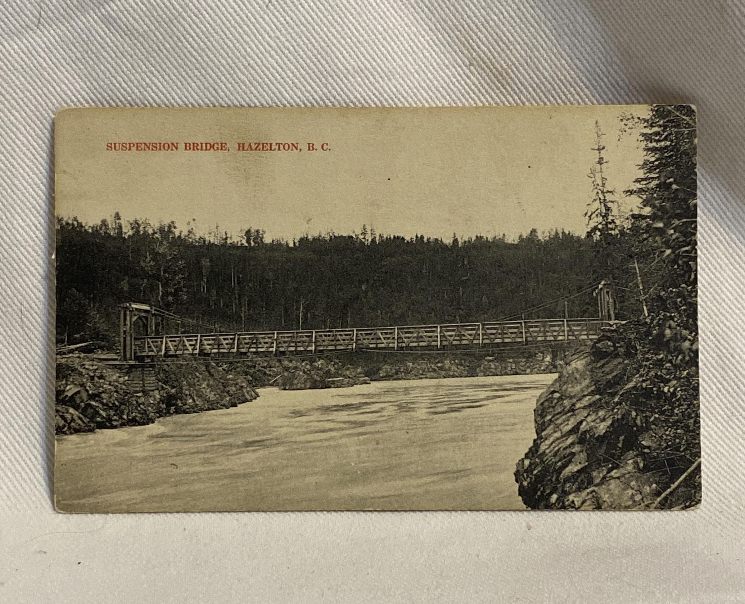 Post Card of a bridge that was near the mouth of two mile creek on Bulkley River & served after Old Indian BridgePhotograph Details