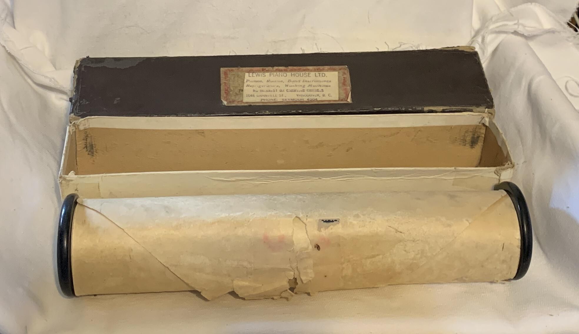 Beige paper roll with two metal black ends