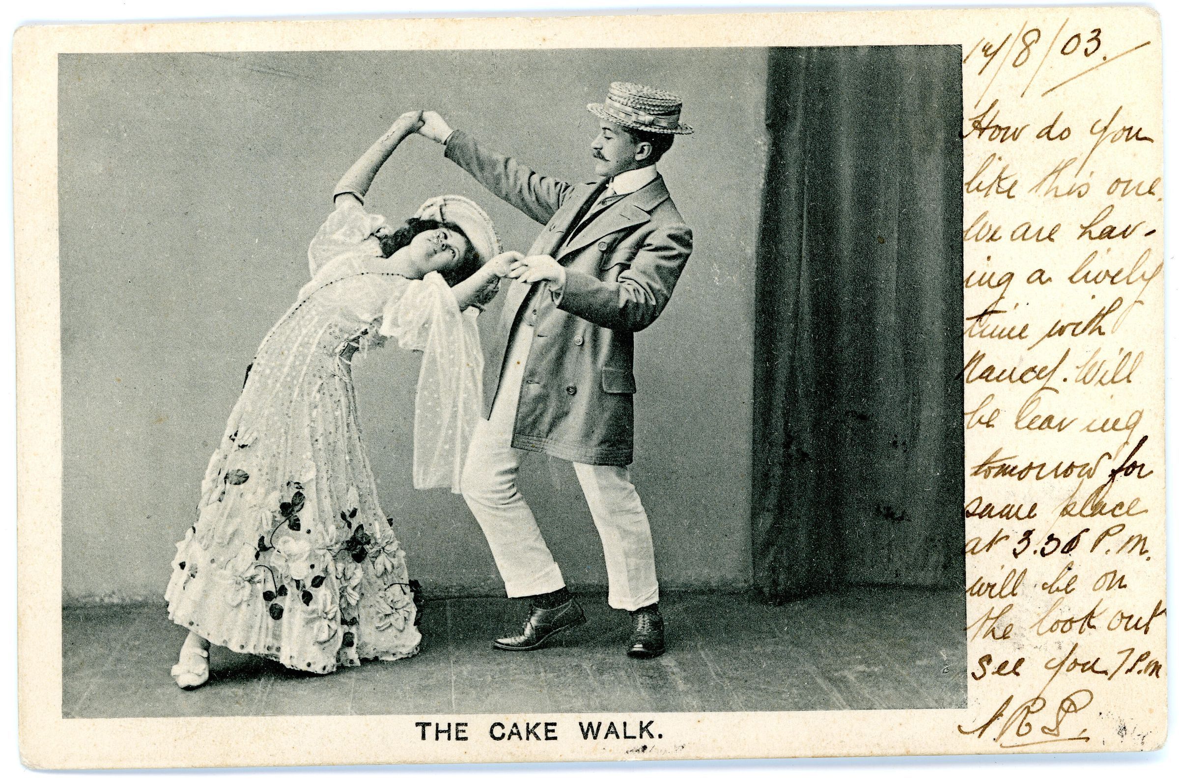 Postcard from 1903, of a couple doing the "Cake Walk,"Collection