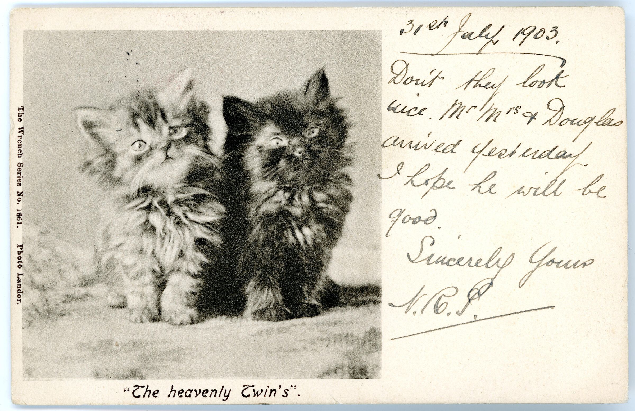 Postcard from 1903 of two kittens called the "Heavenly Twins"Collection