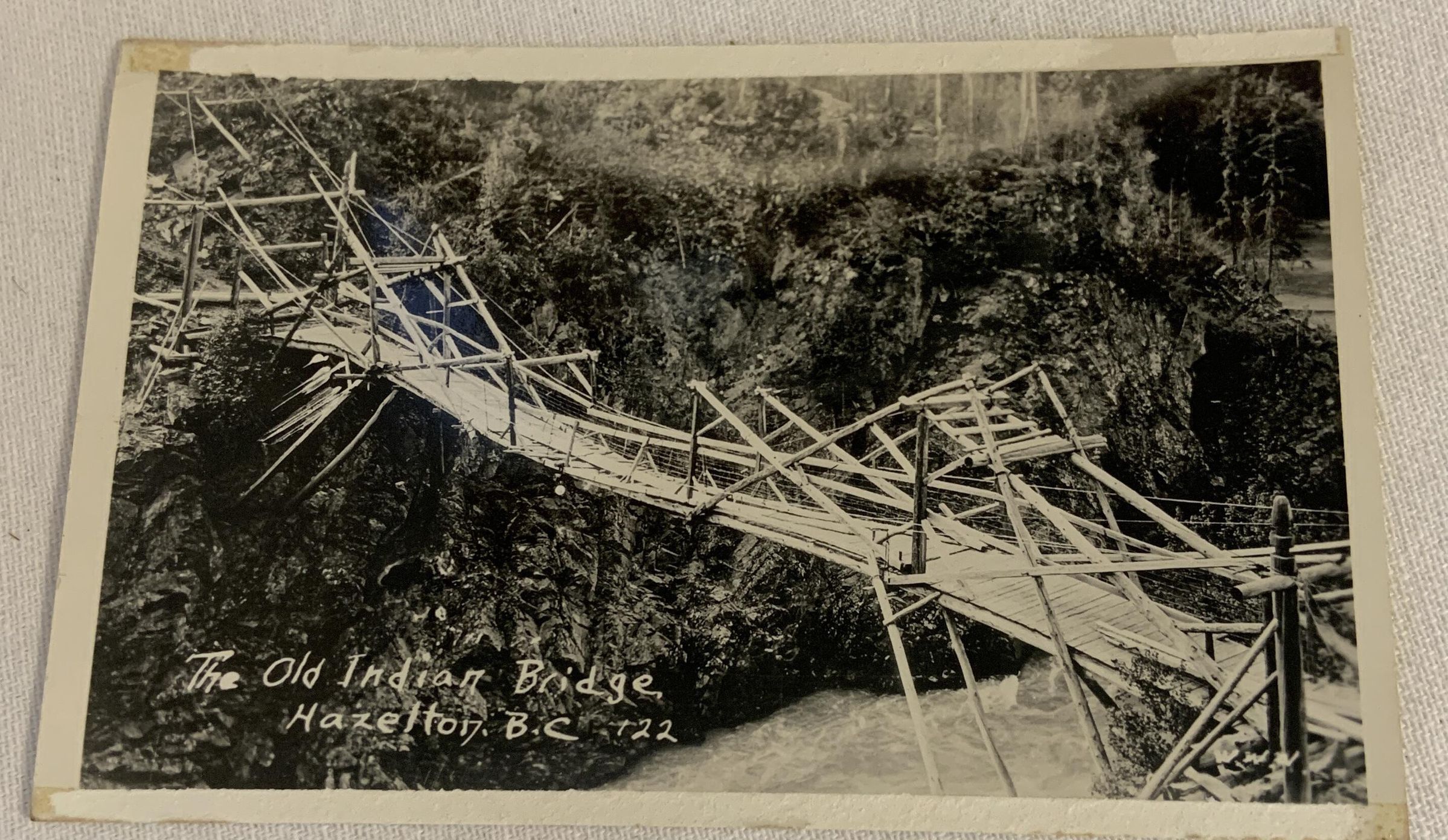 Postcard of The Old Indian Bridge in Hazelton in July 1933Acquisition