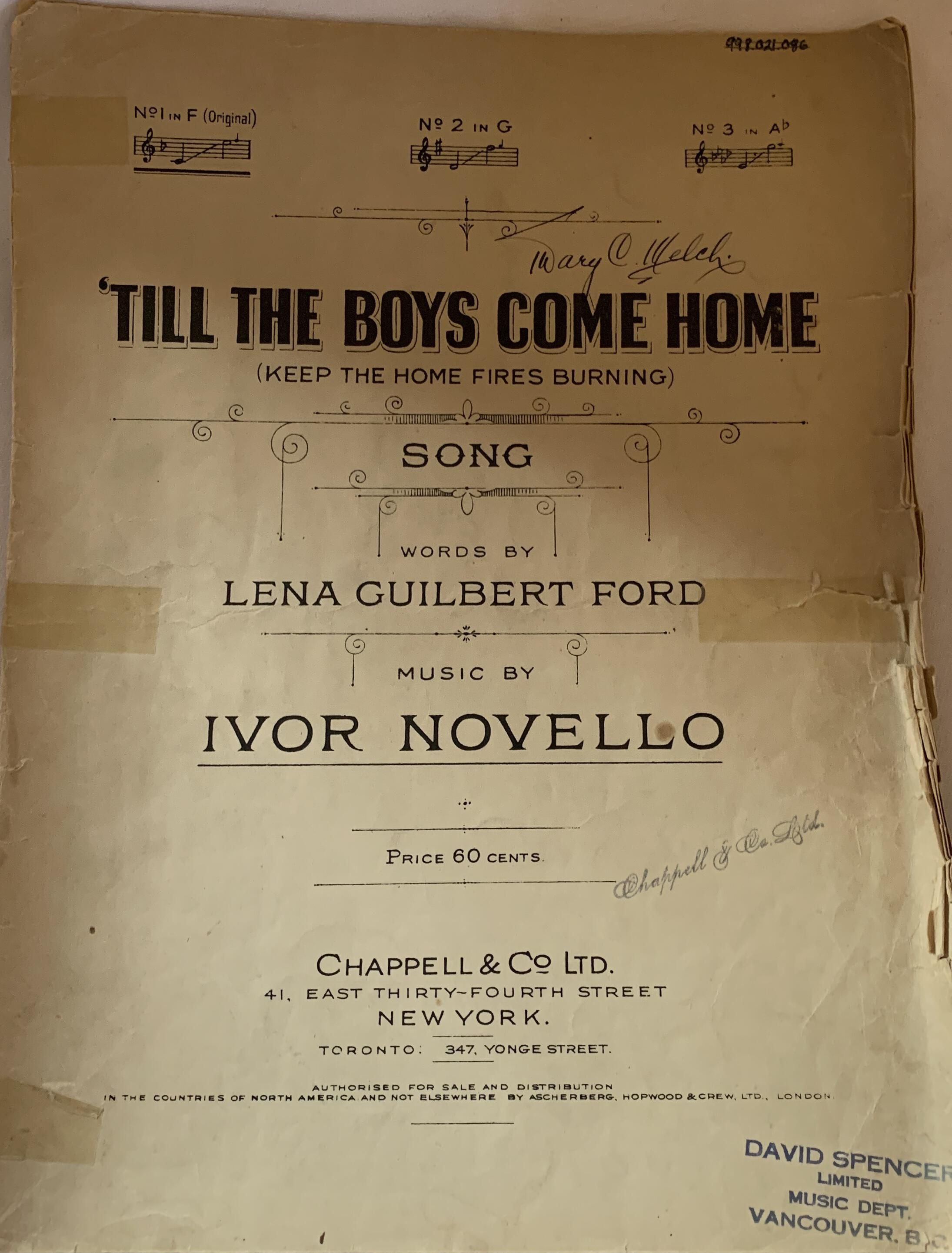 'Till the Boys Come Home' Sheet MusicEntry/Object ID