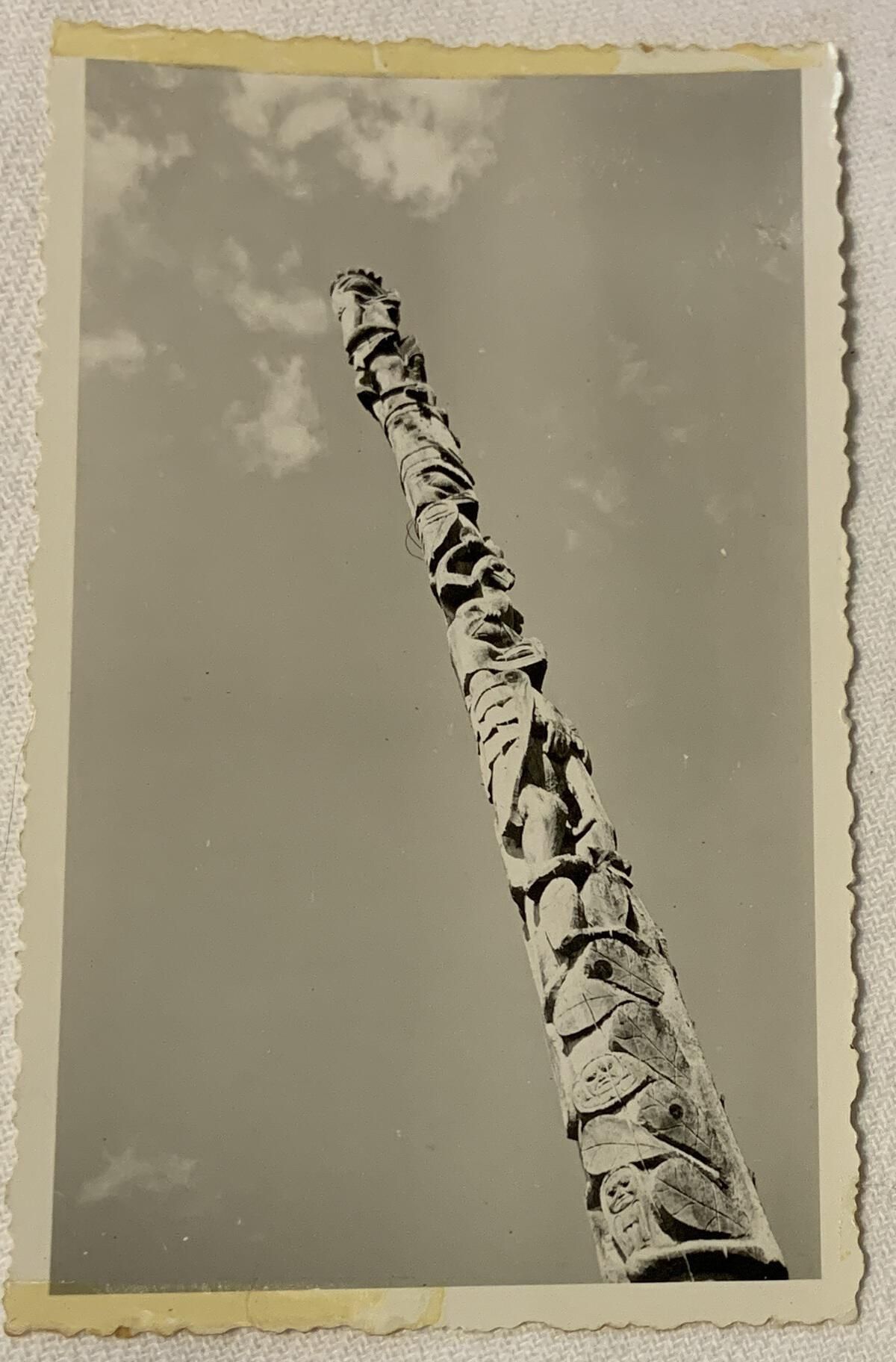 Top of pole of Kweenu in Kitwancool. June 1944Acquisition