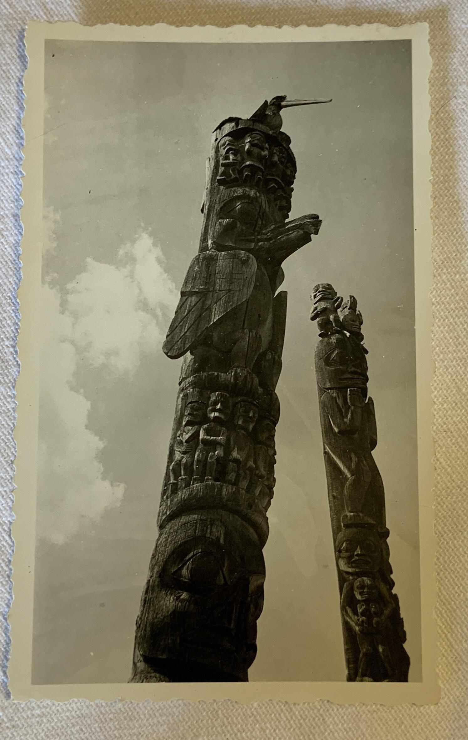 Two totem poles of Weerhae at Kitwancool, June 1944Acquisition