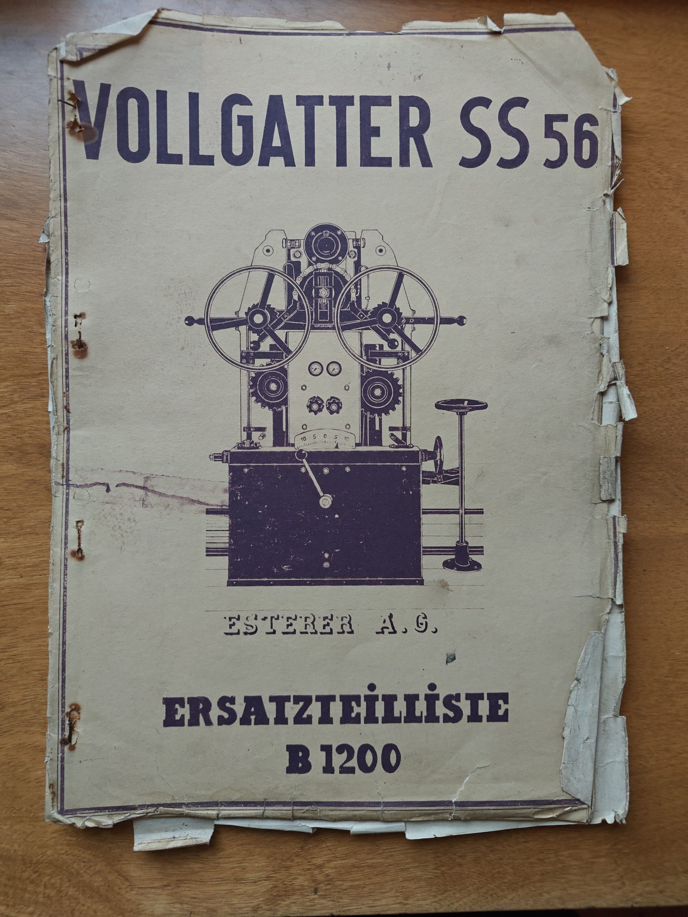 Parts list, diagrams, and spare parts ordering information for machinery. by Esterer A.G. "ERSATZTEILLISIE B1200".