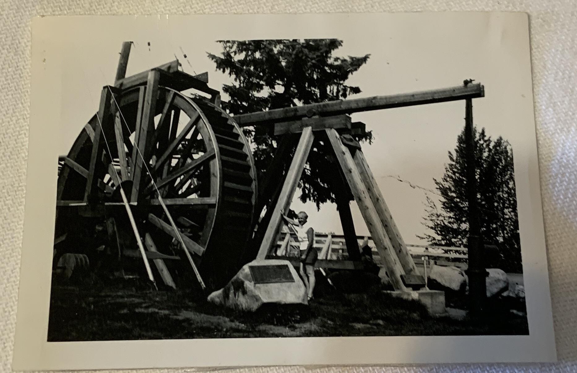 Old Cornish Waterwheel Pump on bank of Fraser River at Quesnel Aug 1958Acquisition