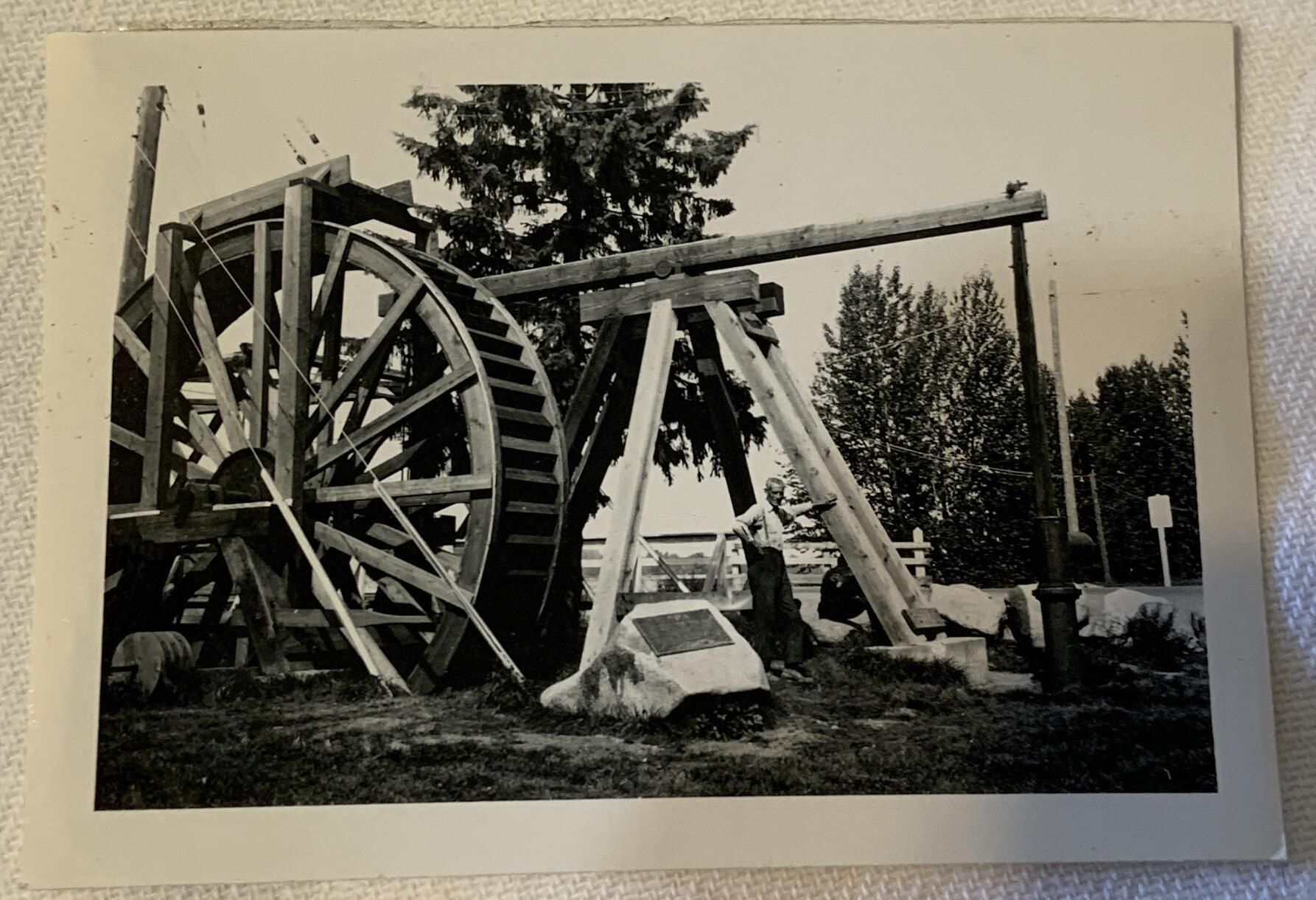 Old Cornish Waterwheel Pump on bank of Fraser River at Quesnel Aug 1958Acquisition