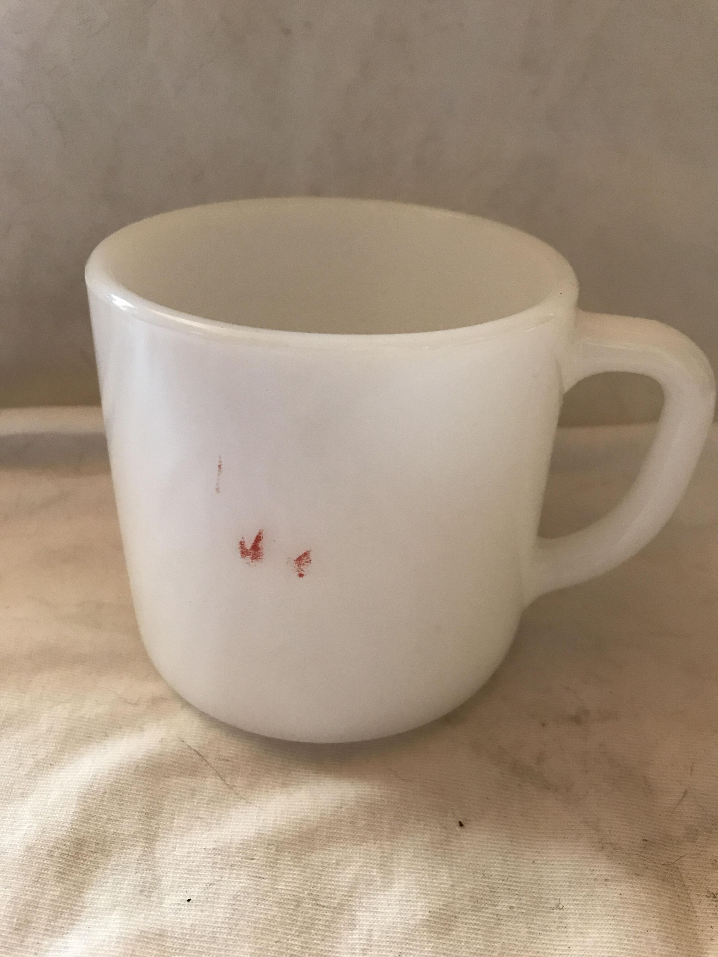 white mug with a little red on it, "heat proof" USAAcquisition