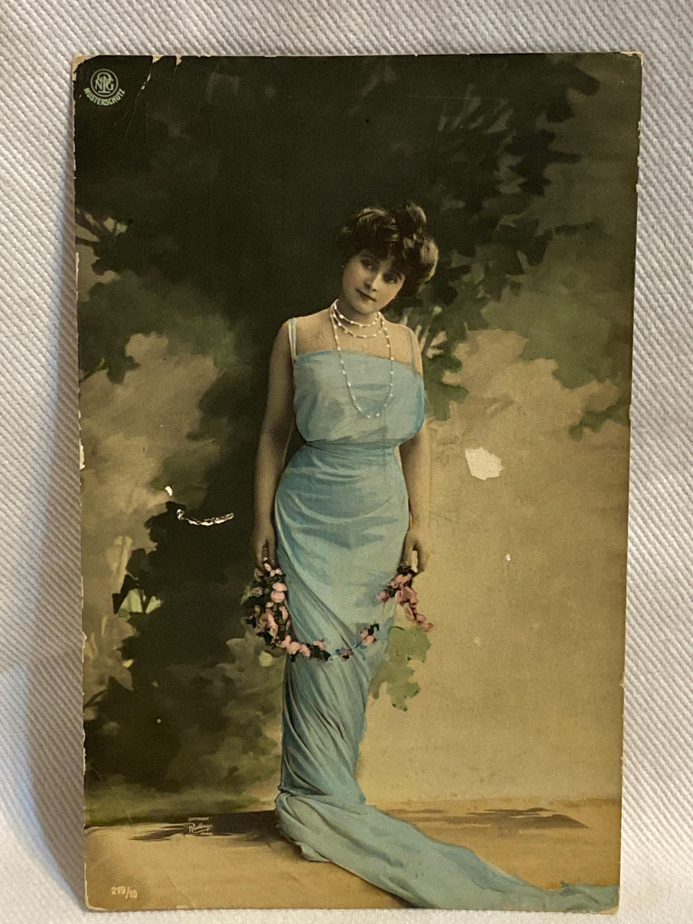 Image is of a woman in a blue dressCollection