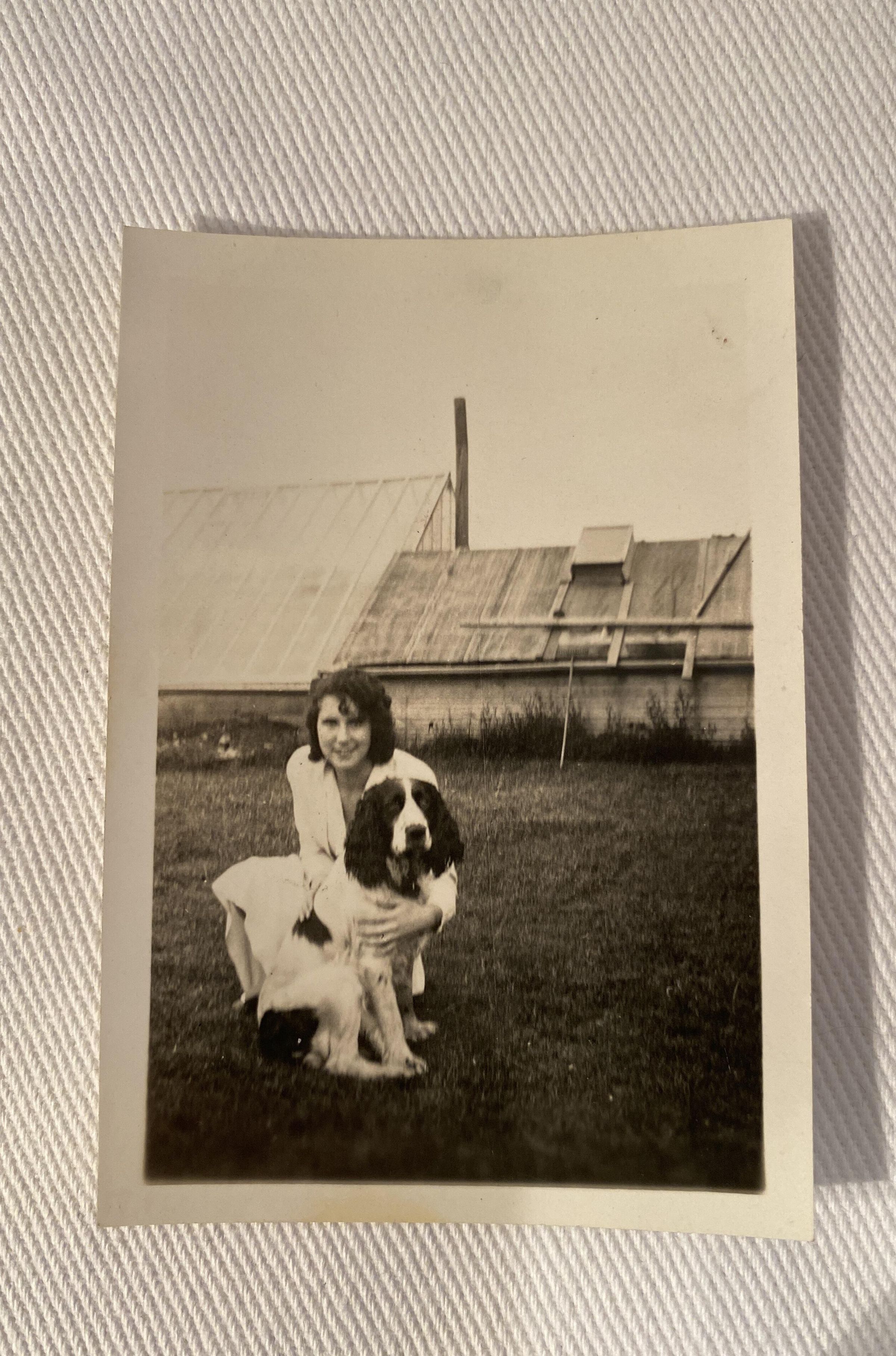 Black and white photograph of a woman holding a dogCollection