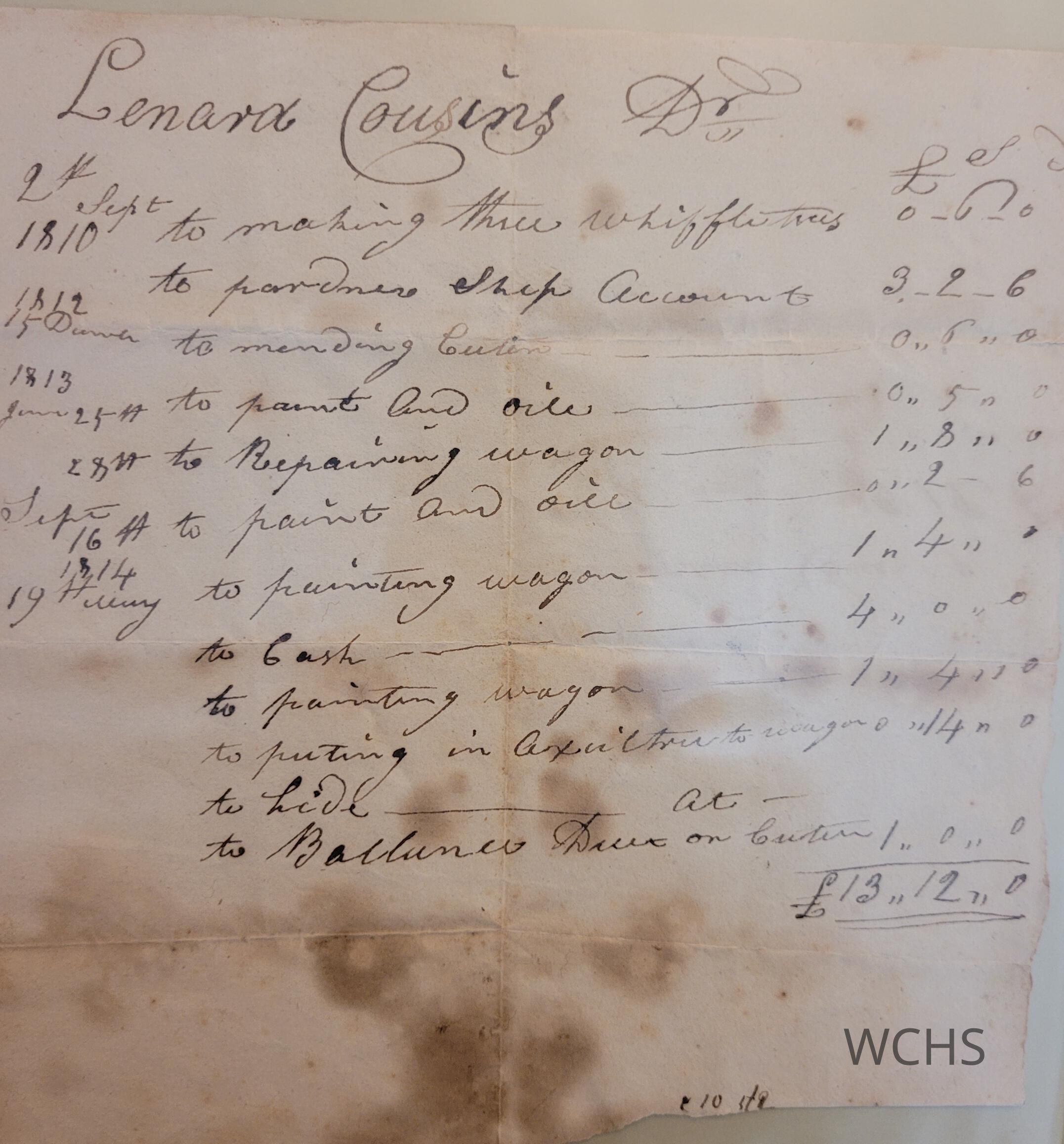 1814 Account Sheet of Lenard Cousins