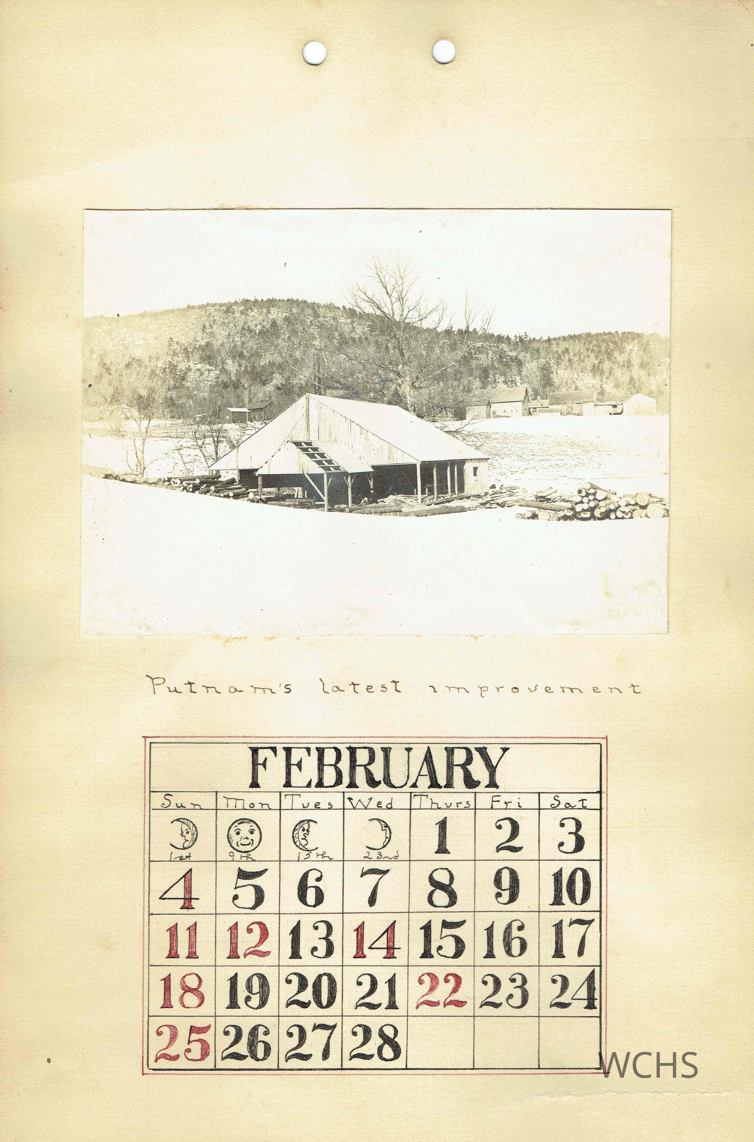 February- Picture of a saw mill with caption " Putnam's latest improvements"