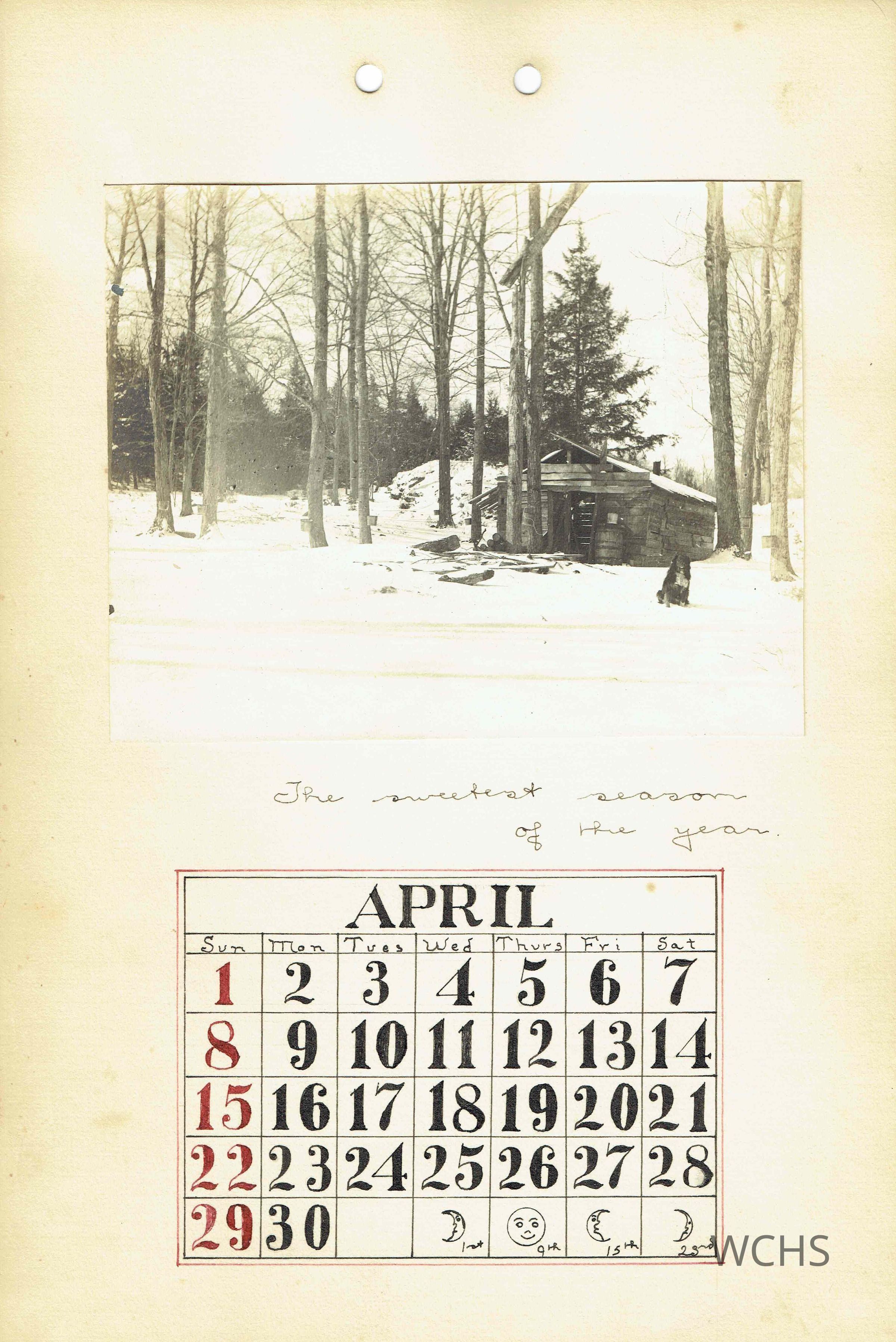 April- Picture of a sugar shack with caption " The sweetest season of the year"