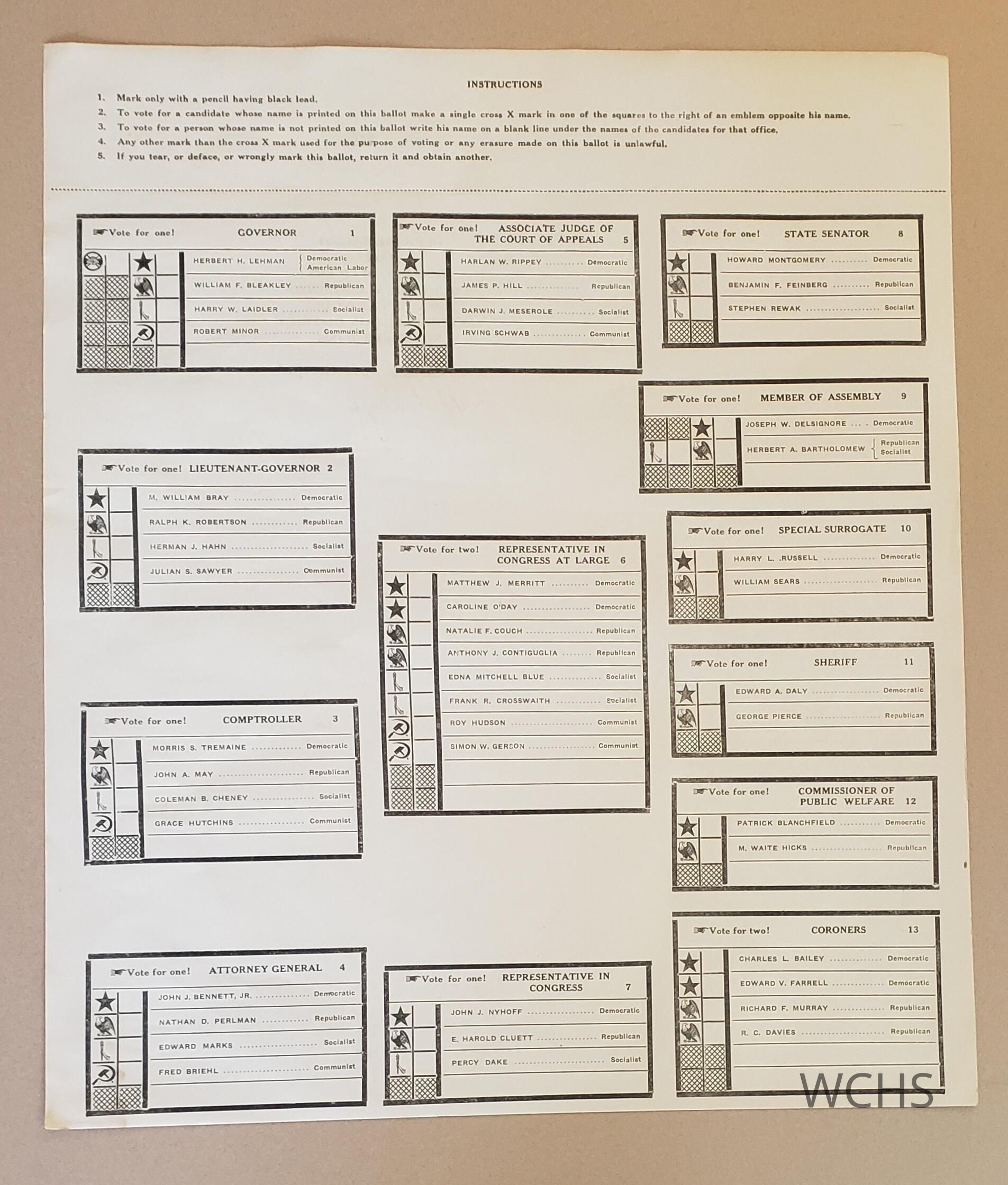 Official Ballot for General Officers County of Washington Town of Cambridge, Second Election District, November 3, 1936