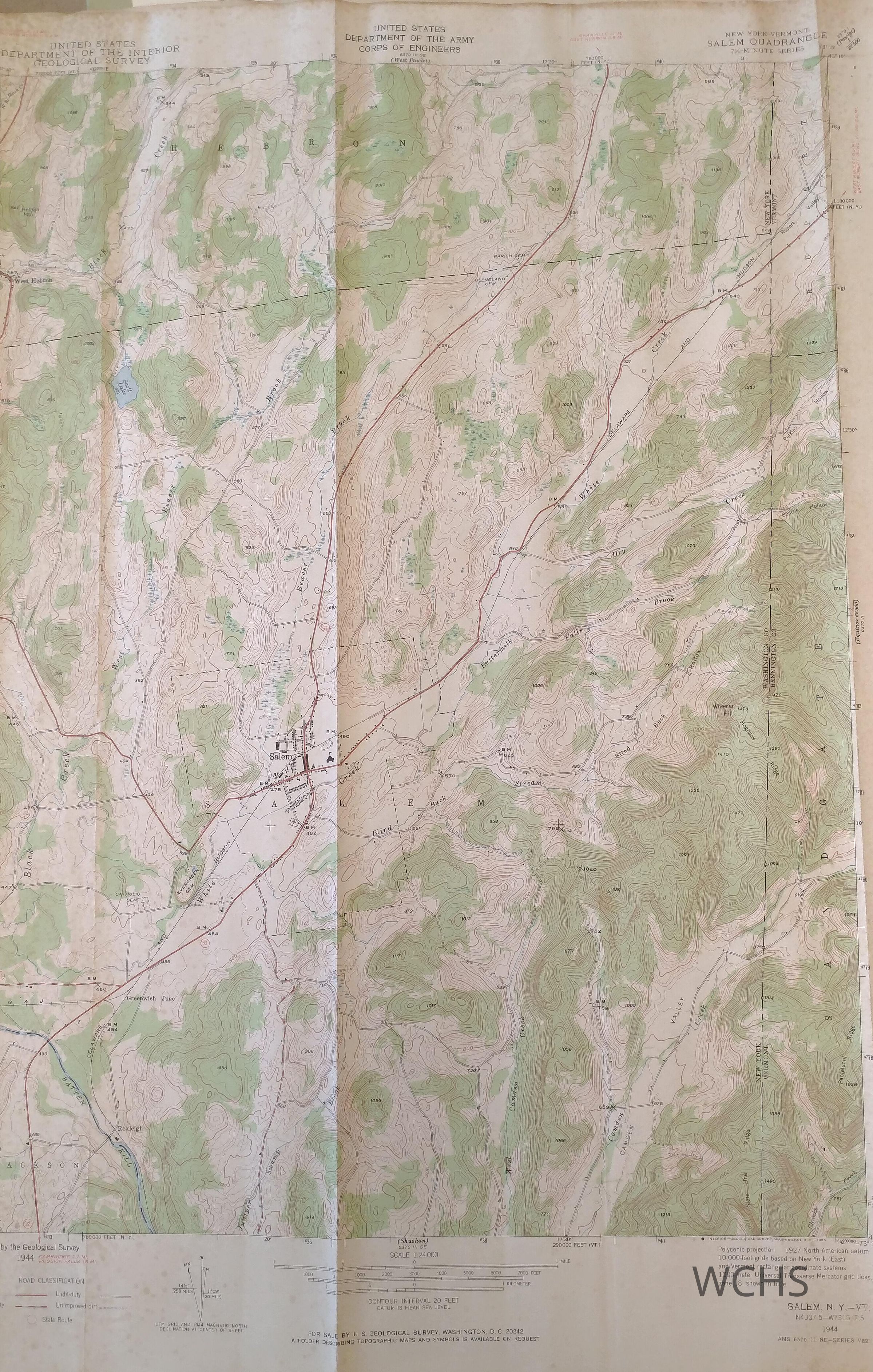 1944 US Geological Survey Map Salem, NY