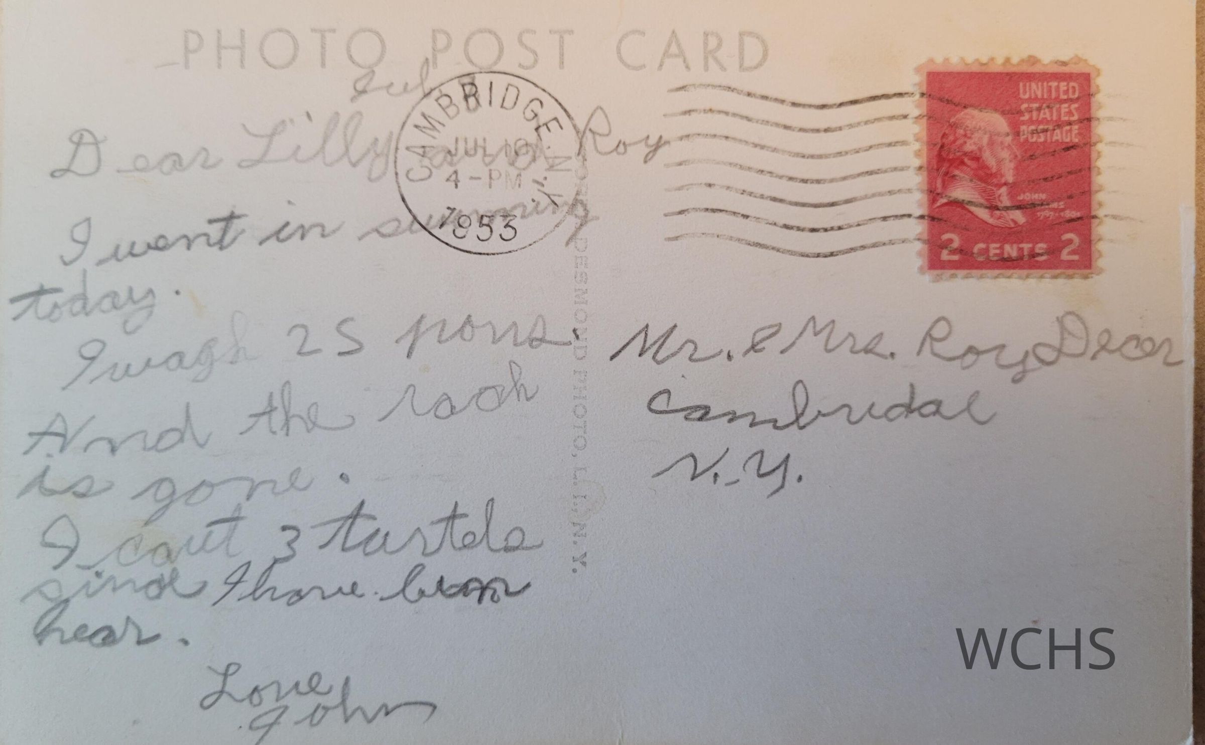 1953 Postcard from Camp Nassau Cambridge, NY. Despite what the postcard has printed on its front, Camp Nassau was actually located on Lake Lauderdale in Jackson, NY