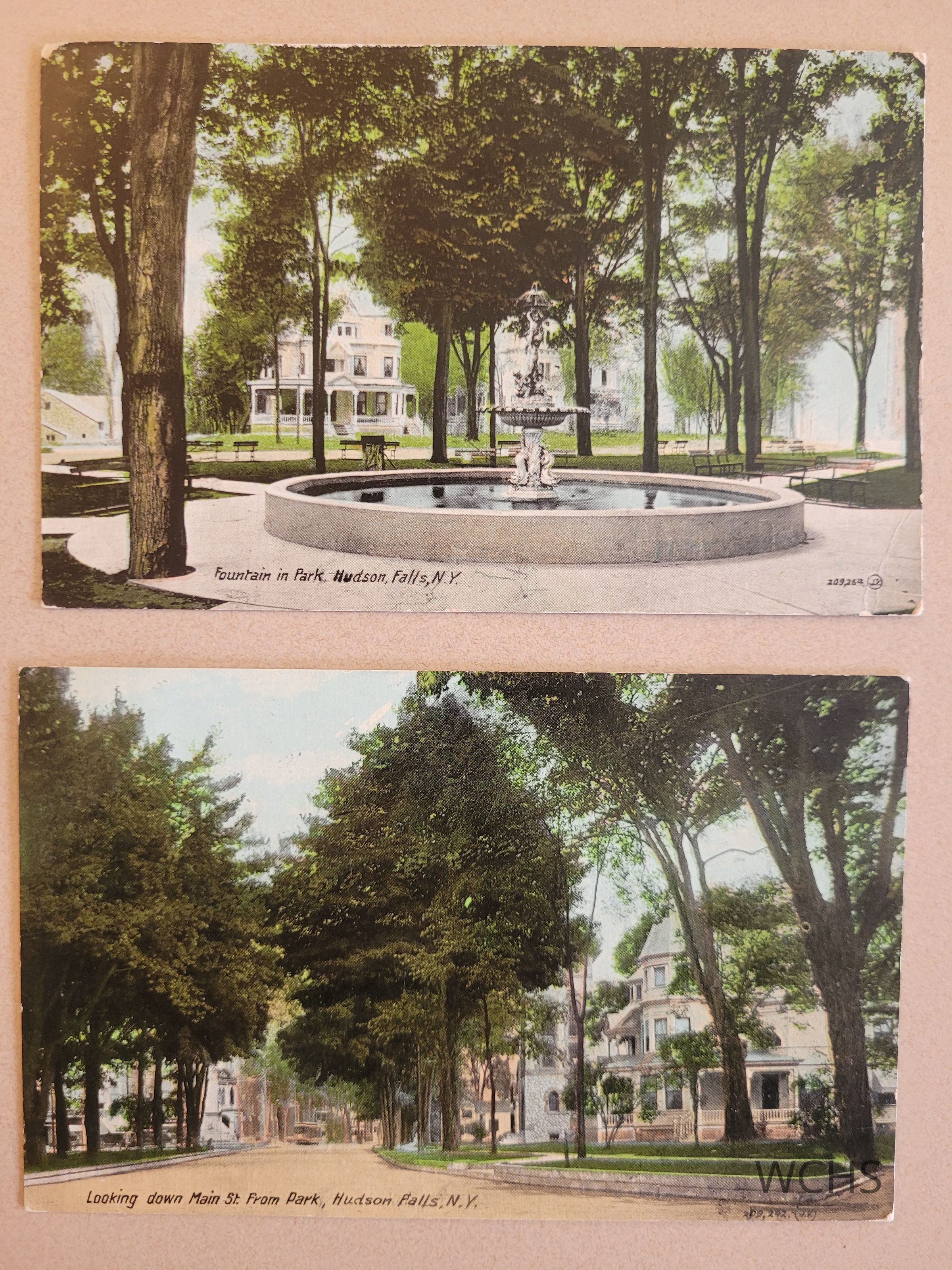 #2- Looking down Main St. From Park, Hudson Falls, NY- Postmarked September 1919- Sent to Maeola Eldridge Hall Argyle, NY