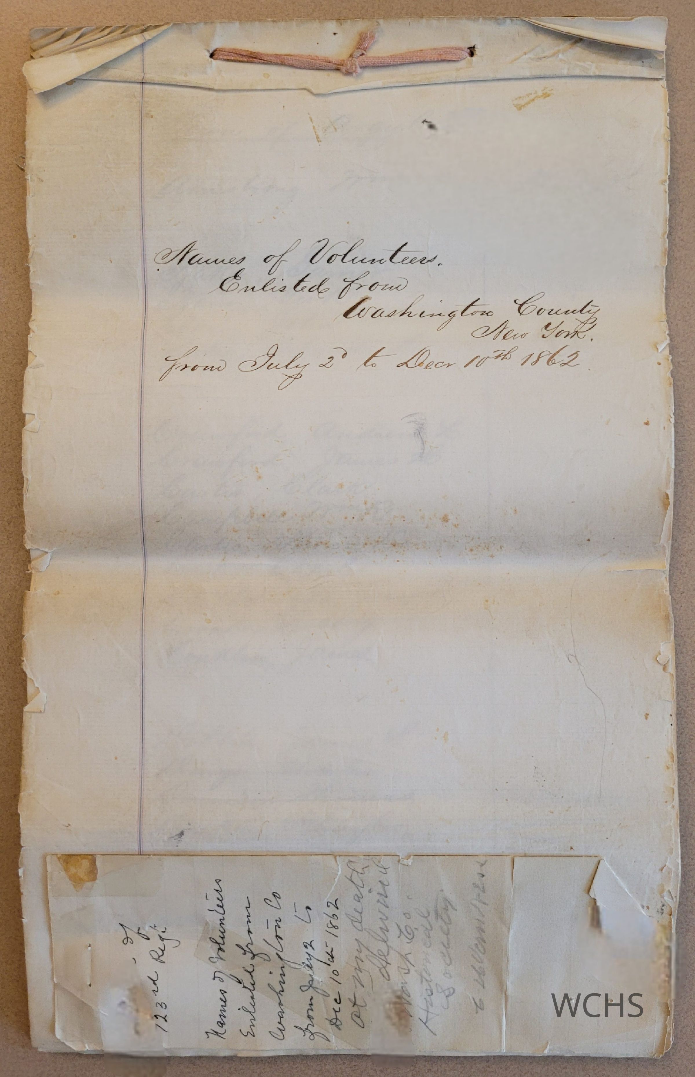 Names of Volunteers Enlisted from Washington County New York from July 2 to December 10th 1862Entry/Object ID