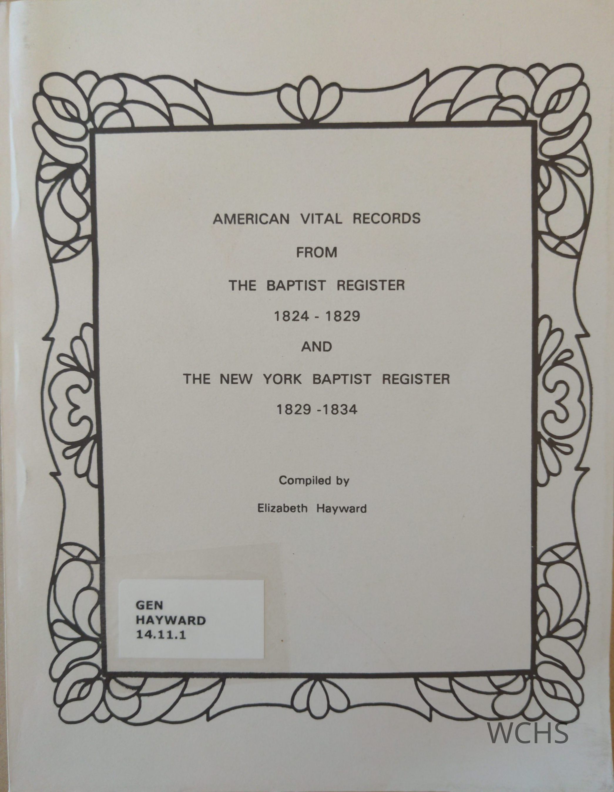 American Vital Records From the Baptist Register 1824-1829 and the New York Baptist Register 1829-1834Entry/Object ID
