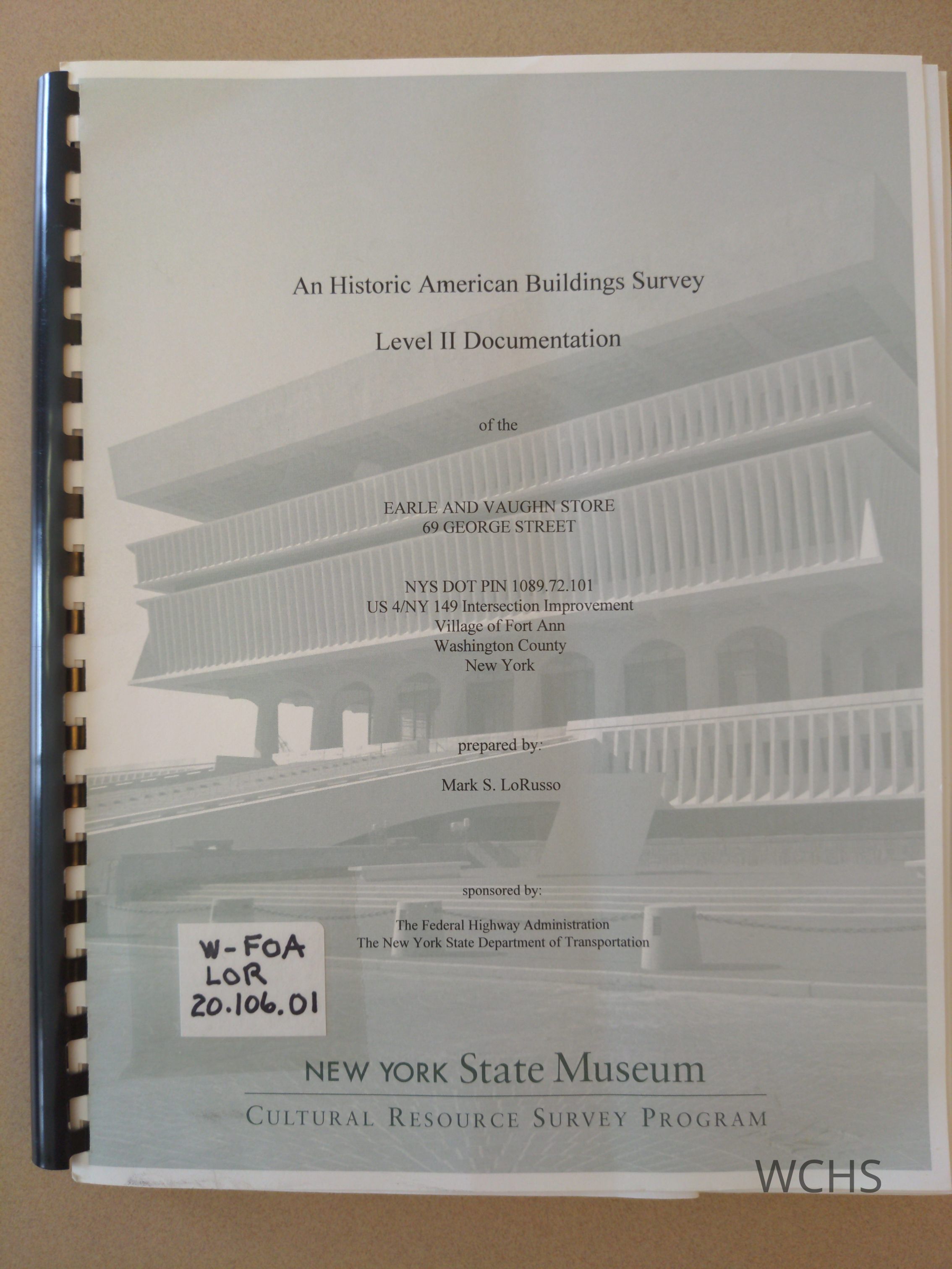 Sent to WCHS by Mark S. LoRusso of Cultural Resource Survey Program