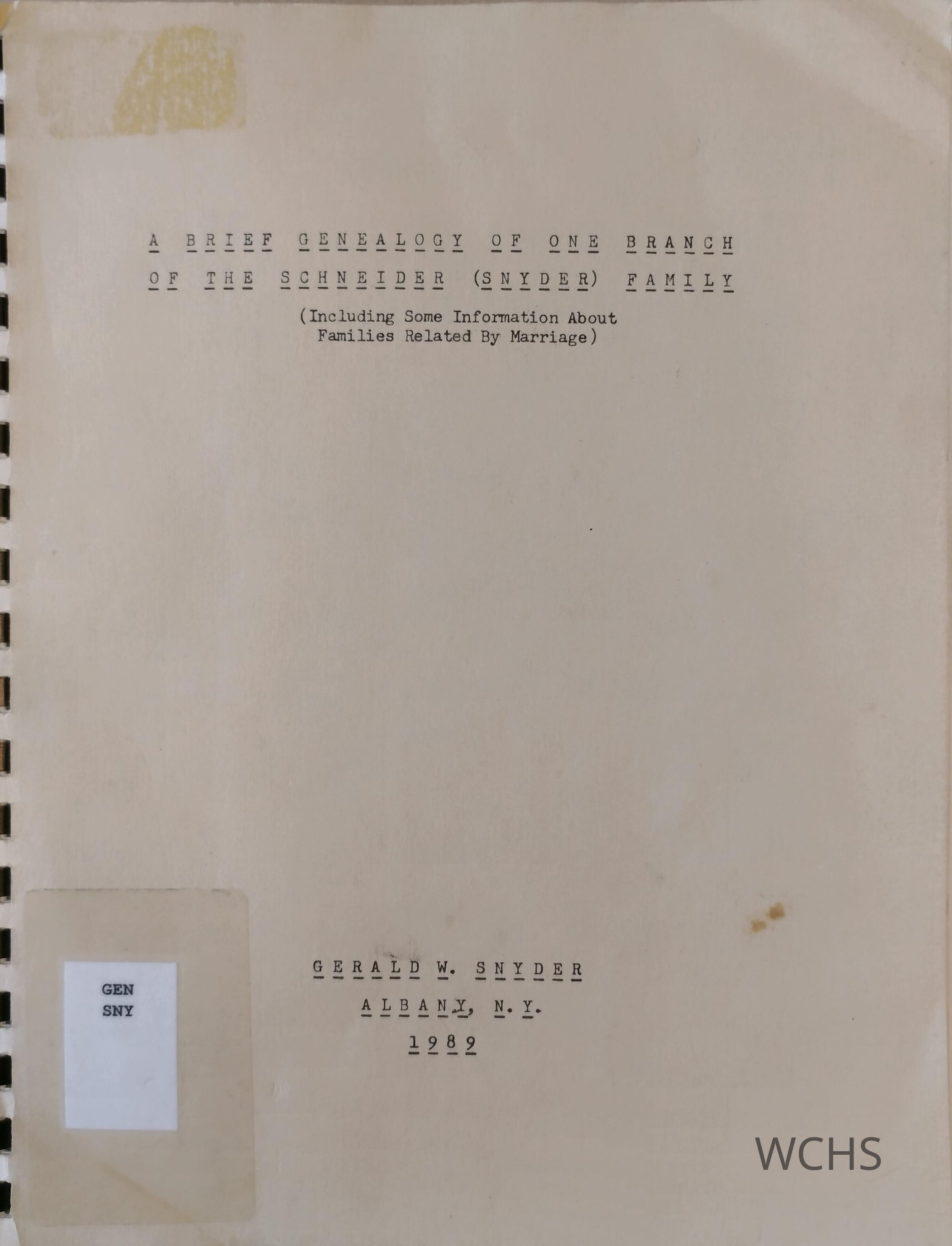 A brief, somewhat condensed genealogical history of one branch of the Snyder (Schneider) family, going back to the mid 1600's. Not complete, but hopefully helpful to anyone who wishes to do further research.
