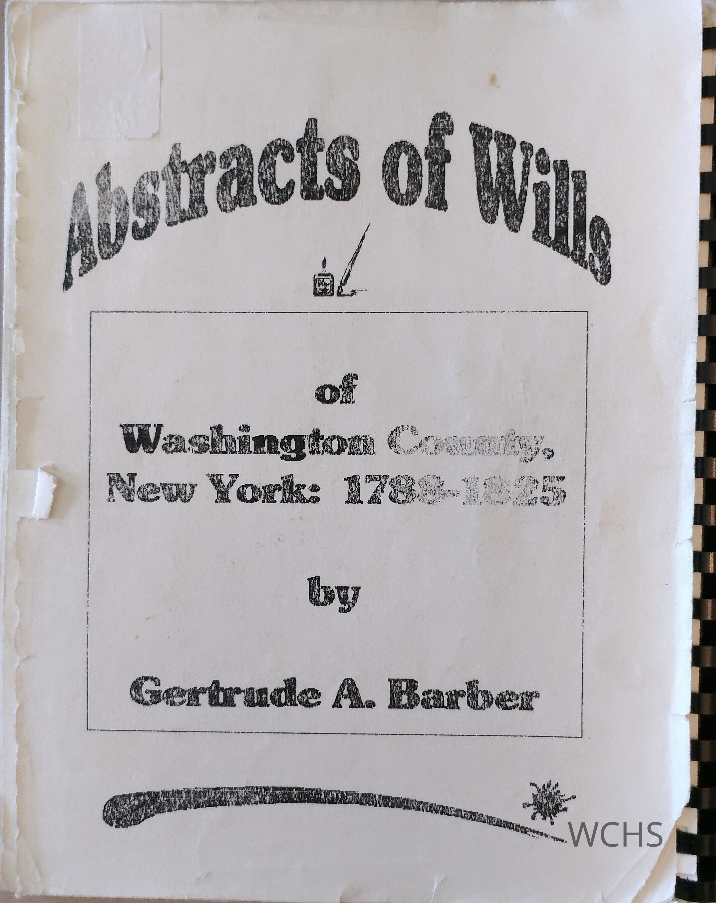 Indexed abstracts of wills 1788 - 1825 in Washington County originally published in 1937 located on the ready reference cart