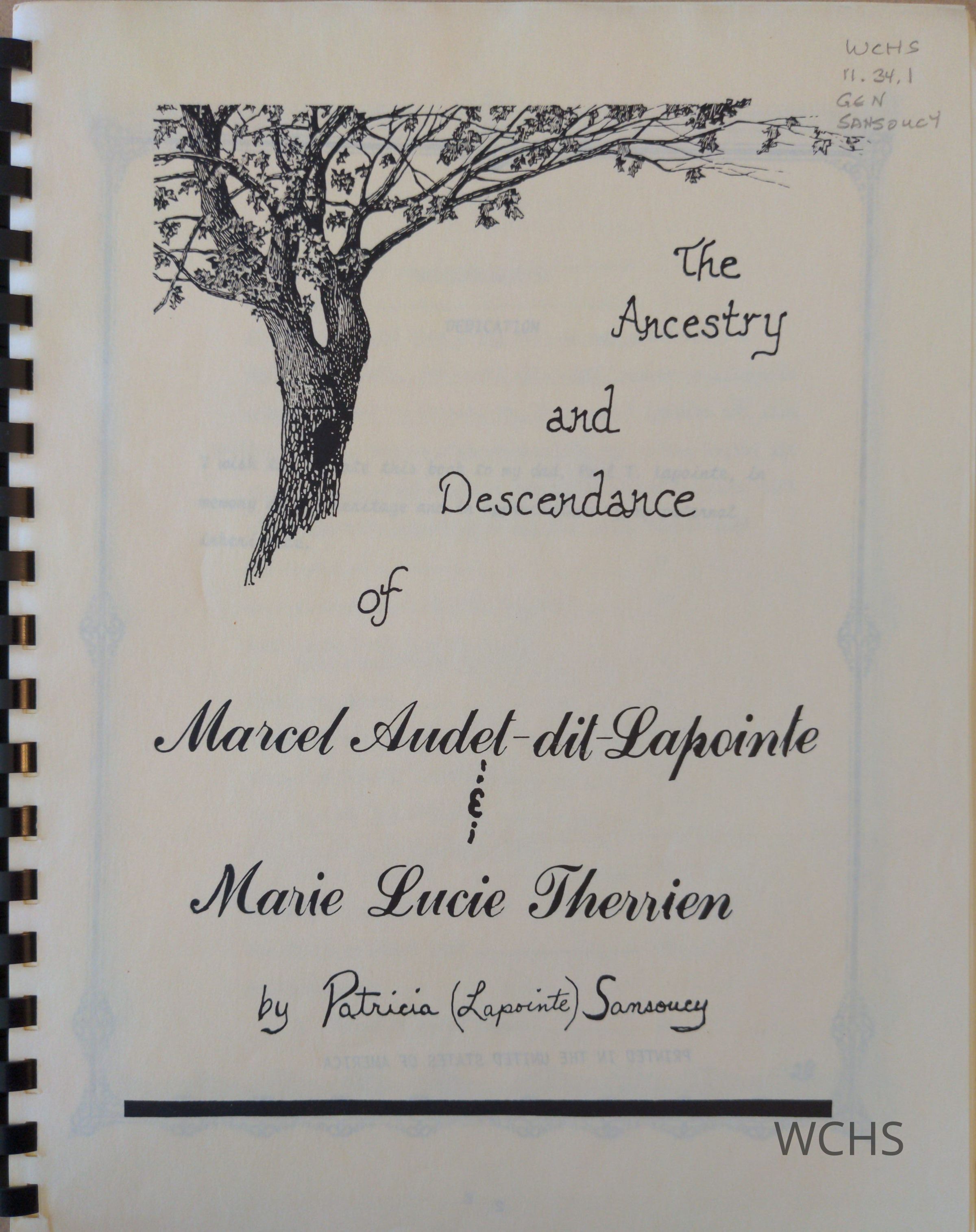 Ancestry and Descendance of Marcel Audet-dit-Lapointe and Marie Lucie Therrien, written in 1990.Publication Details