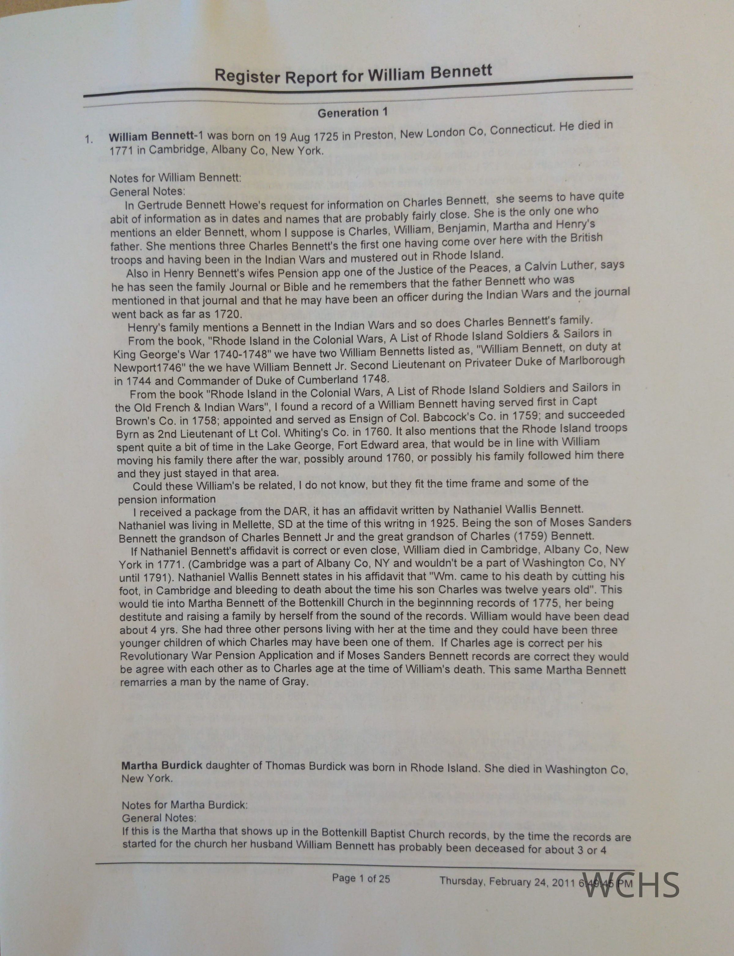 Register Report for Willaim Bennett, 1727 - 1771 Nathaniel Wallis Bennetts affidavit