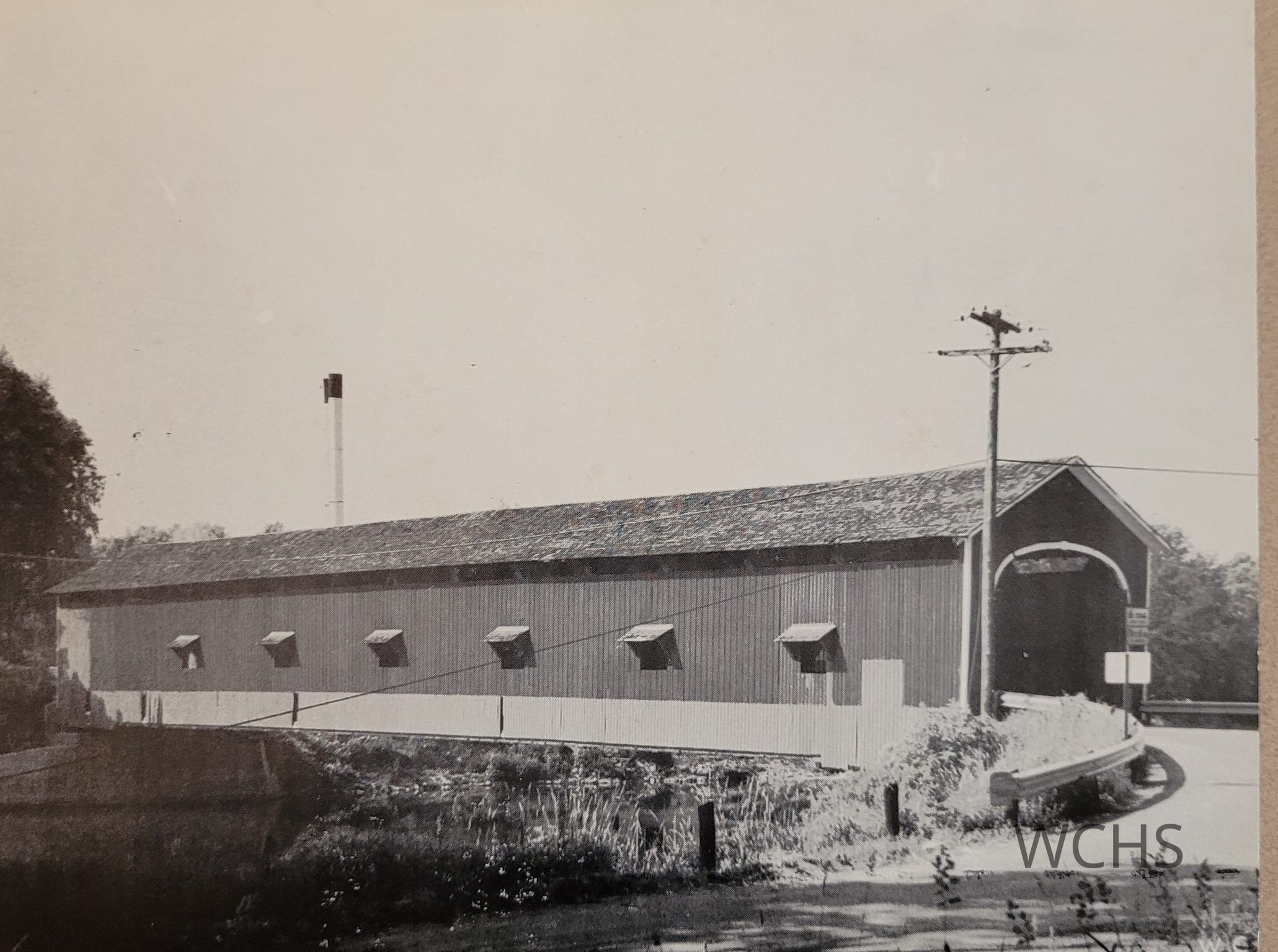 Image highlighting the windows in the Buskirk Covered Bridge. See item 2023.19.1 On Back: Taken from Washington Co. Side Oak Hill Road View 1956