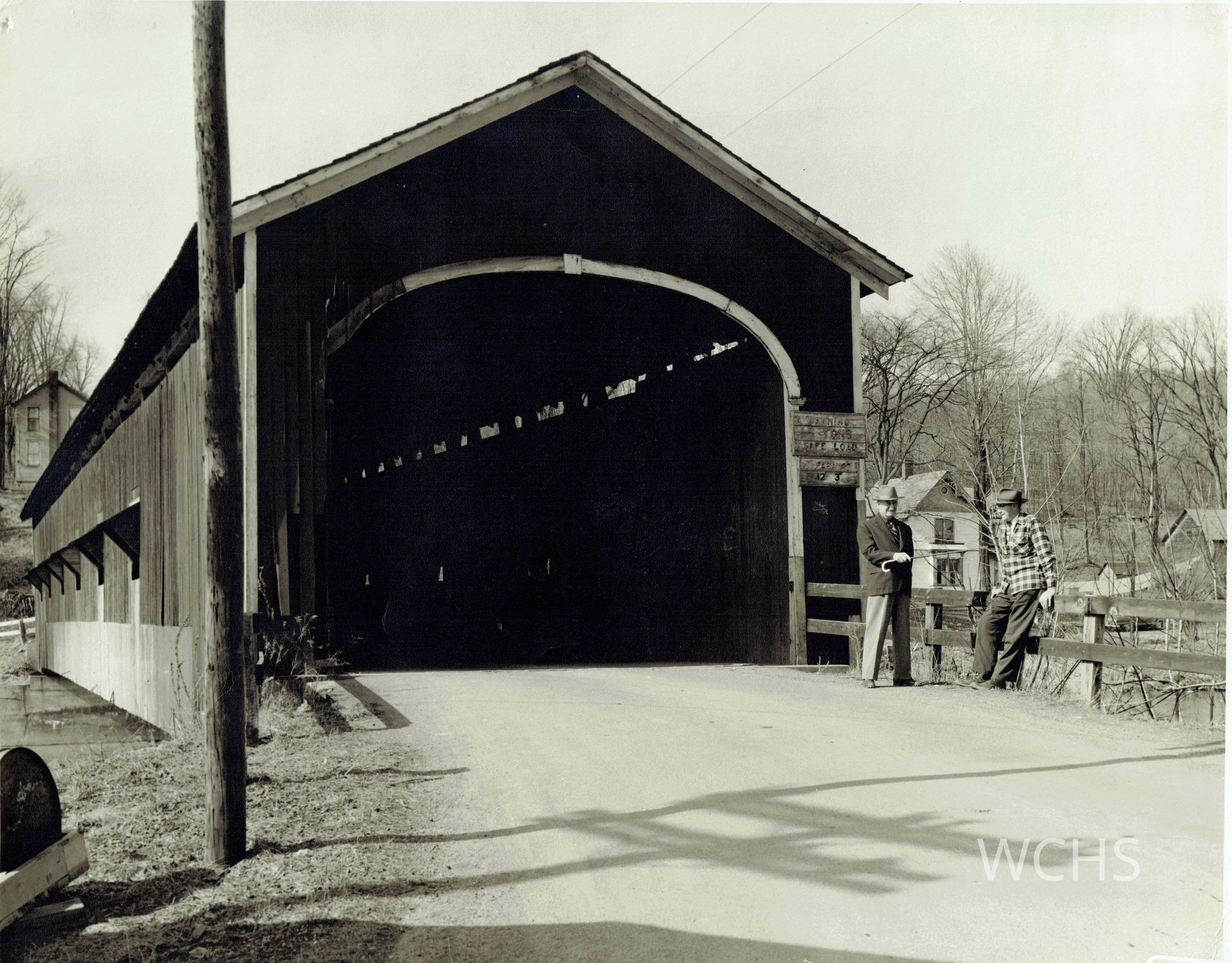 Taken from the Rennsealer side of the border showing Washington County, NY in the background. Sitting in front of the Buskirk covered bridge are Dr. Ivory and Frank Gifford.