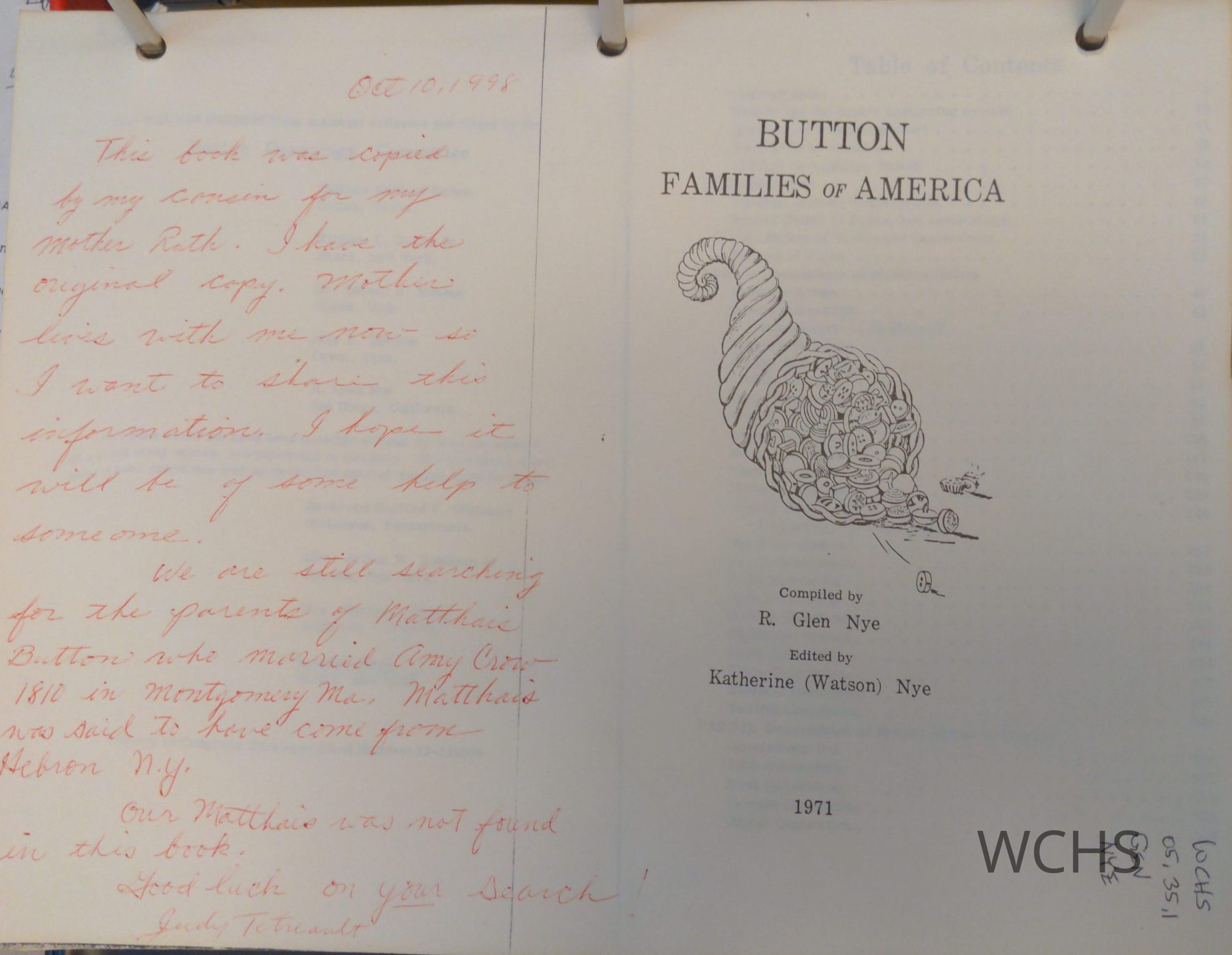 Photocopy of "Button Families of America." Book is compiled from material collected and edited by the Button Genealogy Committee.