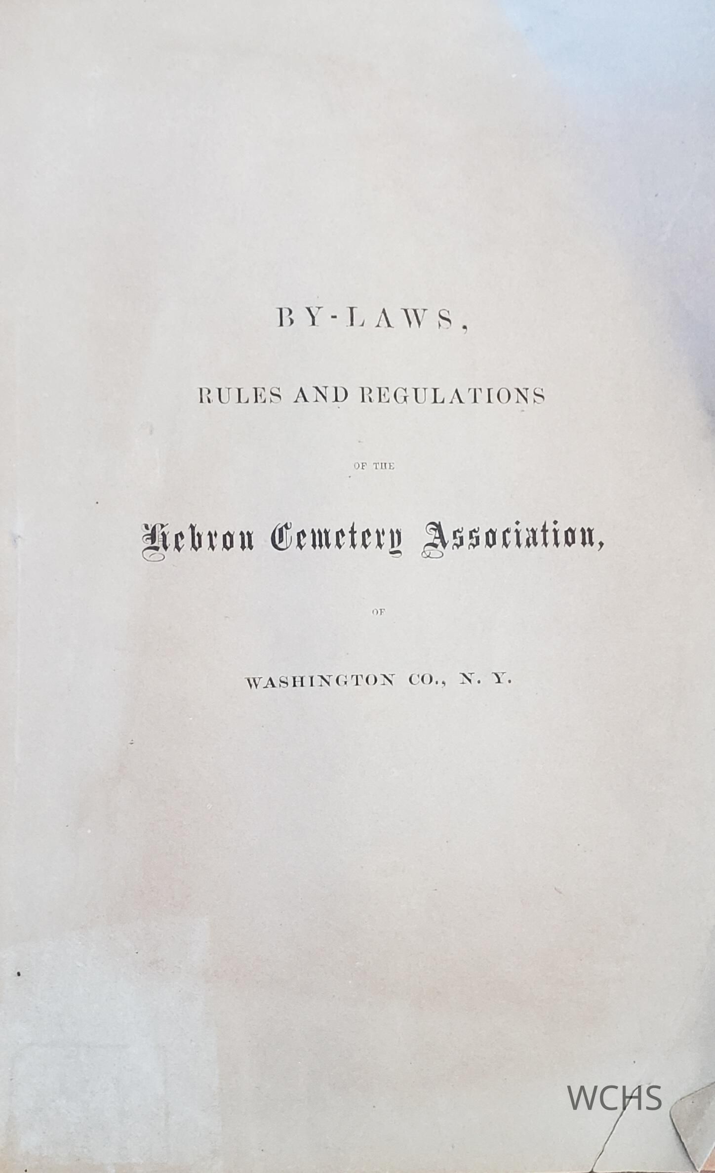 By-Laws, Rules and Regulations of the Hebron Cemetery Association, of Washington CountyEntry/Object ID