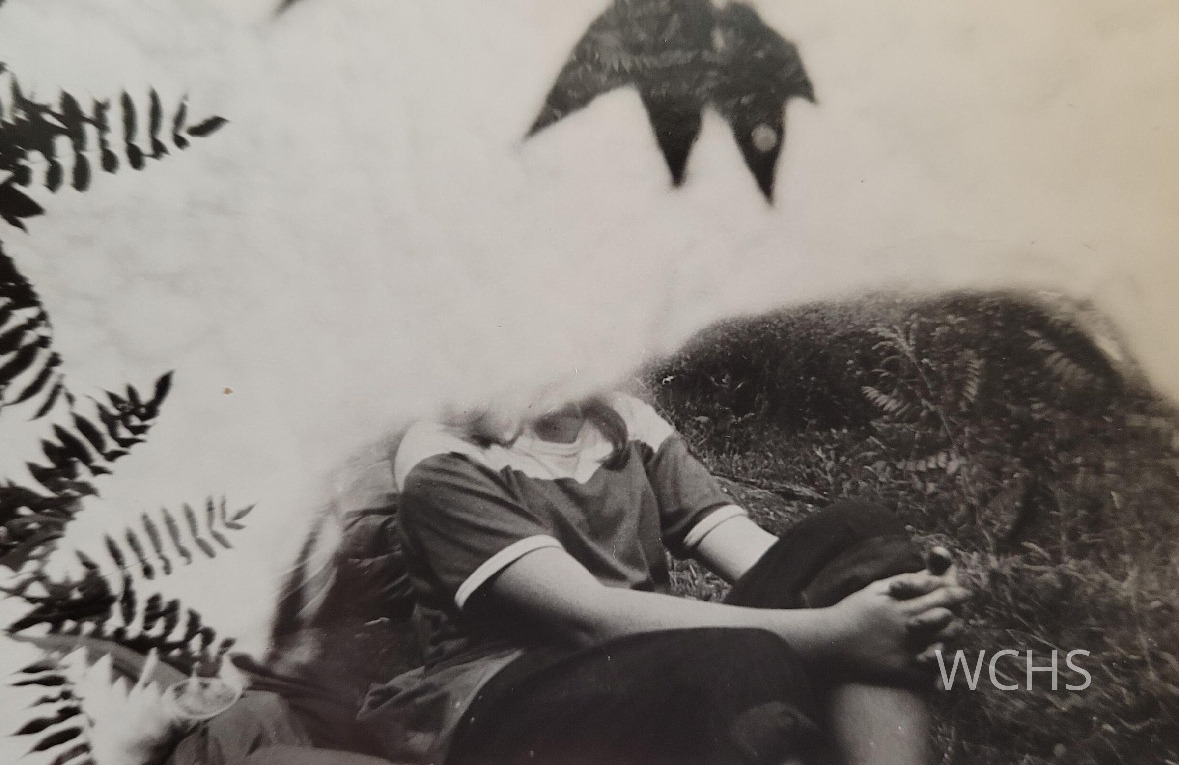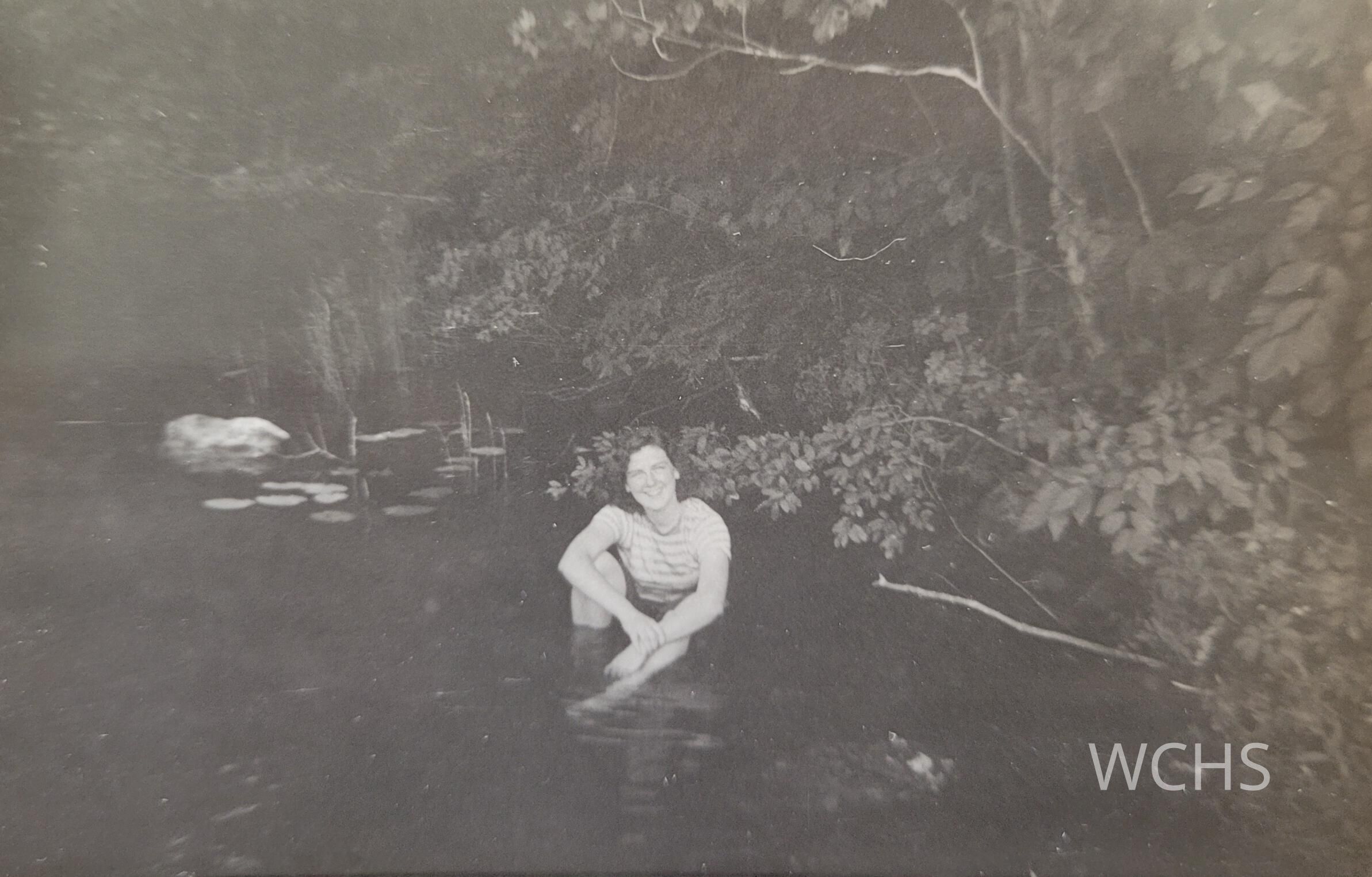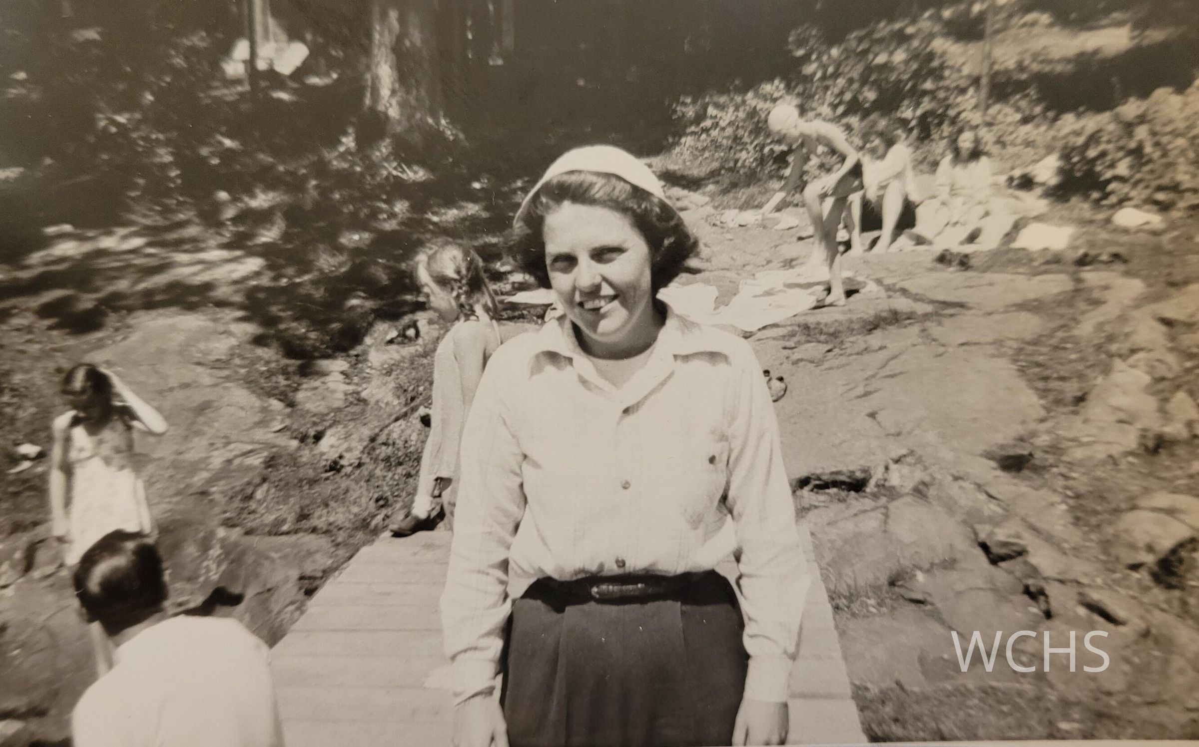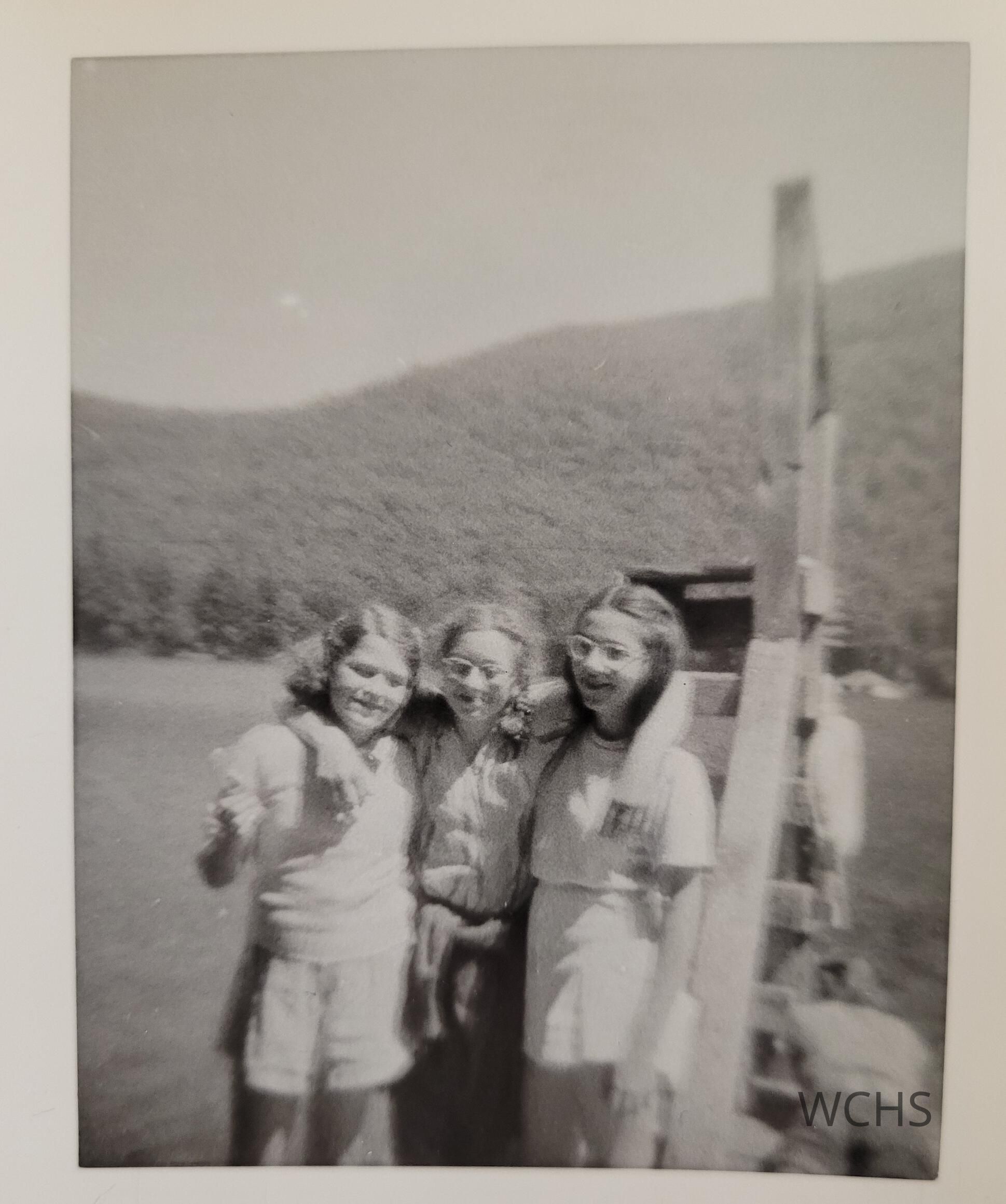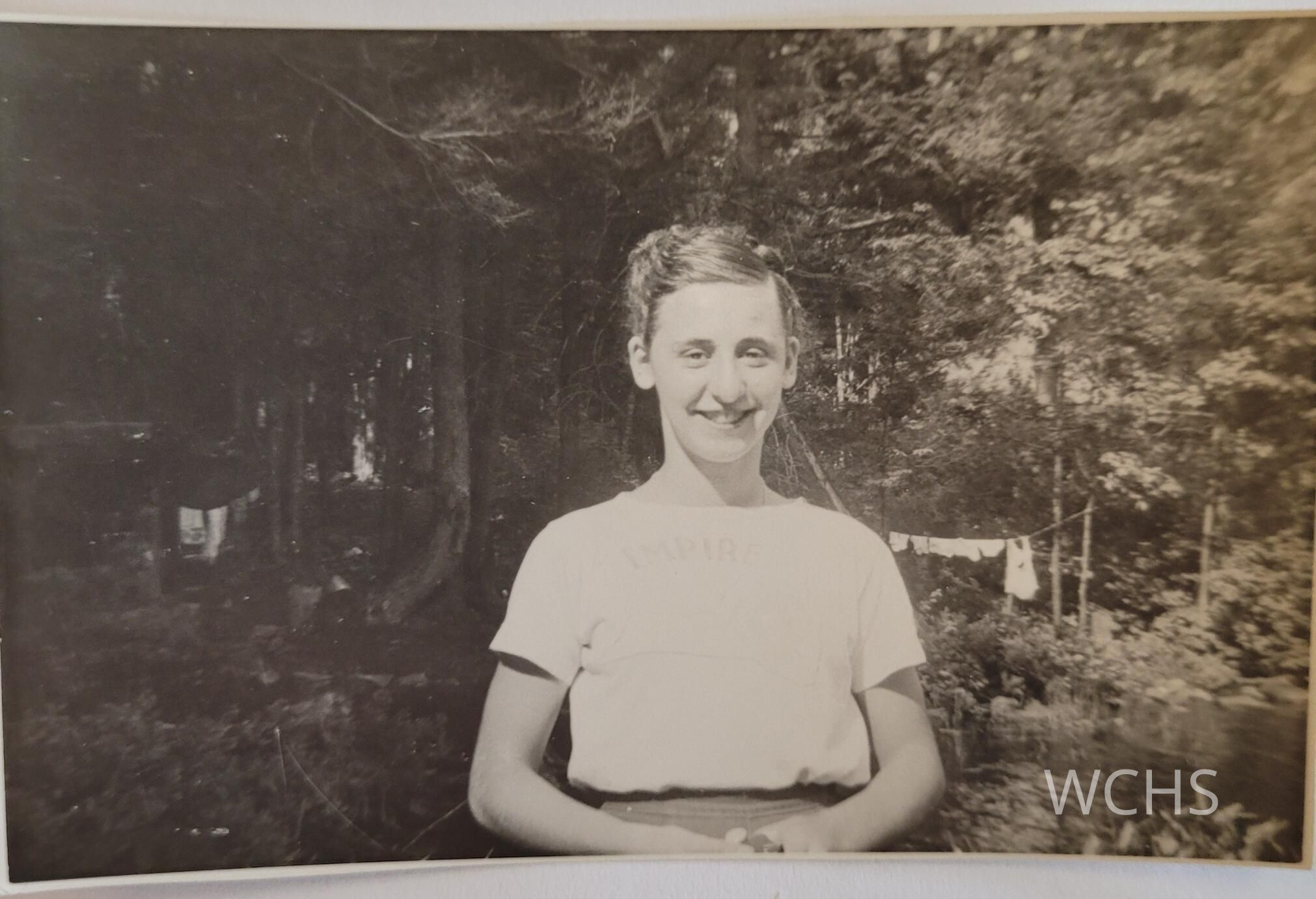 Also on the outside of the envelope was "Hudson Falls." It is possible these photographs are of the Hudson Falls Girl Scout Troop while camping at Lake Nebo. If a notation is on the back it is transcribed below.