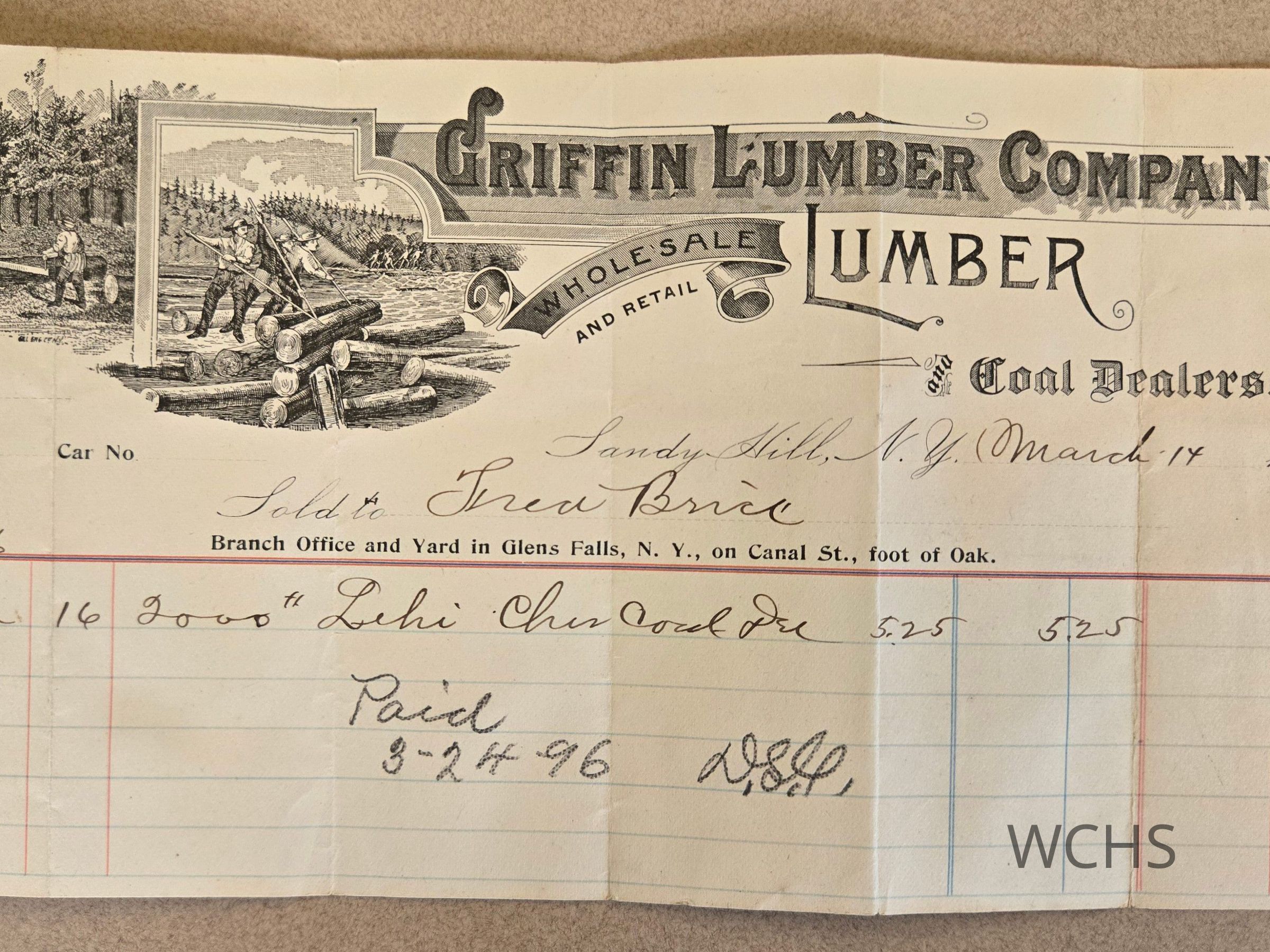 e. Bill from Griffin Lumber Company and Coal Dealers to Fred Brice March 14, 1896
