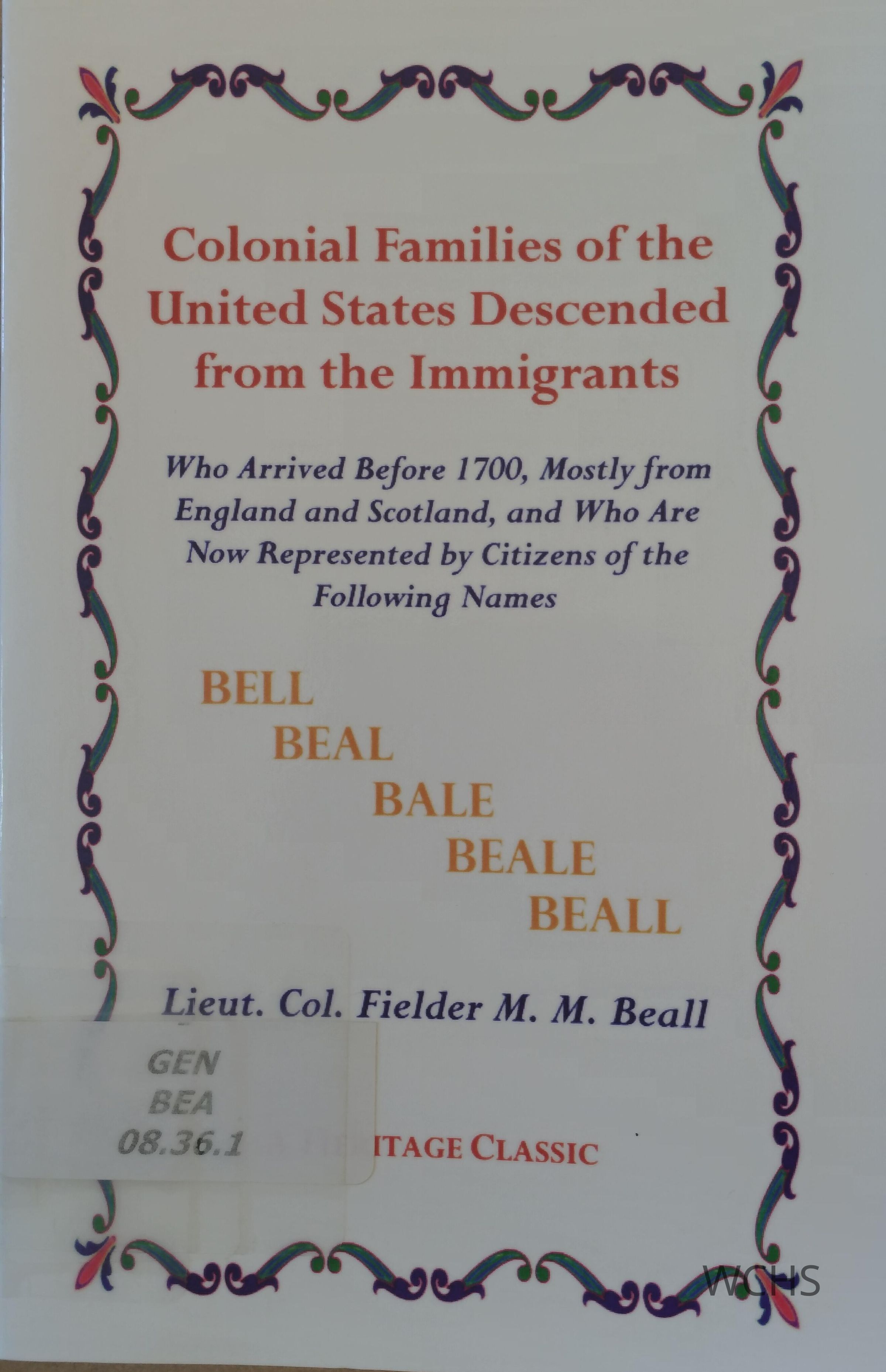 Colonial Families of the United States Descended From the Immigrants....Entry/Object ID