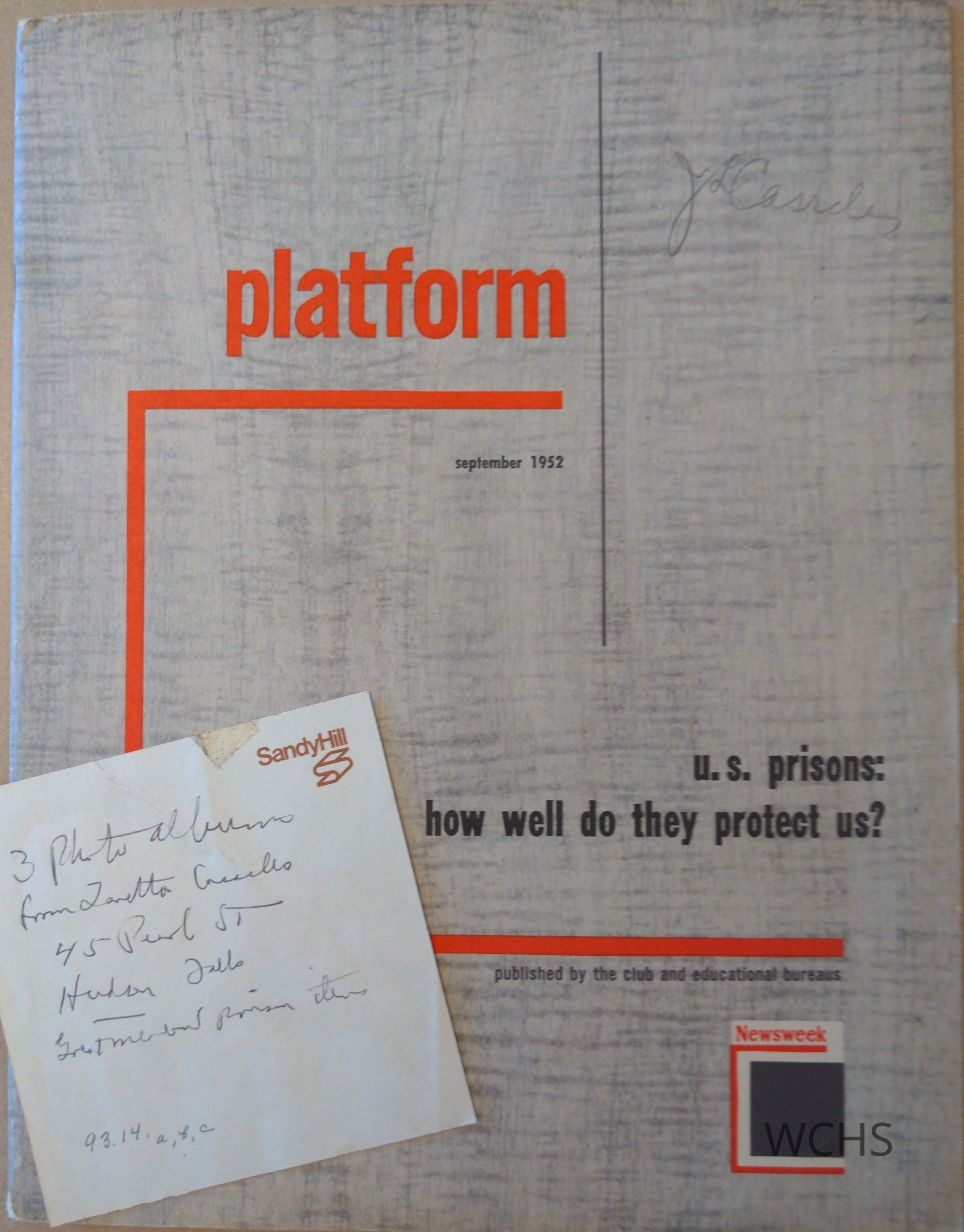 Folders have newspaper articles (some original and some photocopies) of various subjects - a prisoner's wedding and many escapes. Collection are books kept by the Casscles family. Leland Casscles was the prison warden.