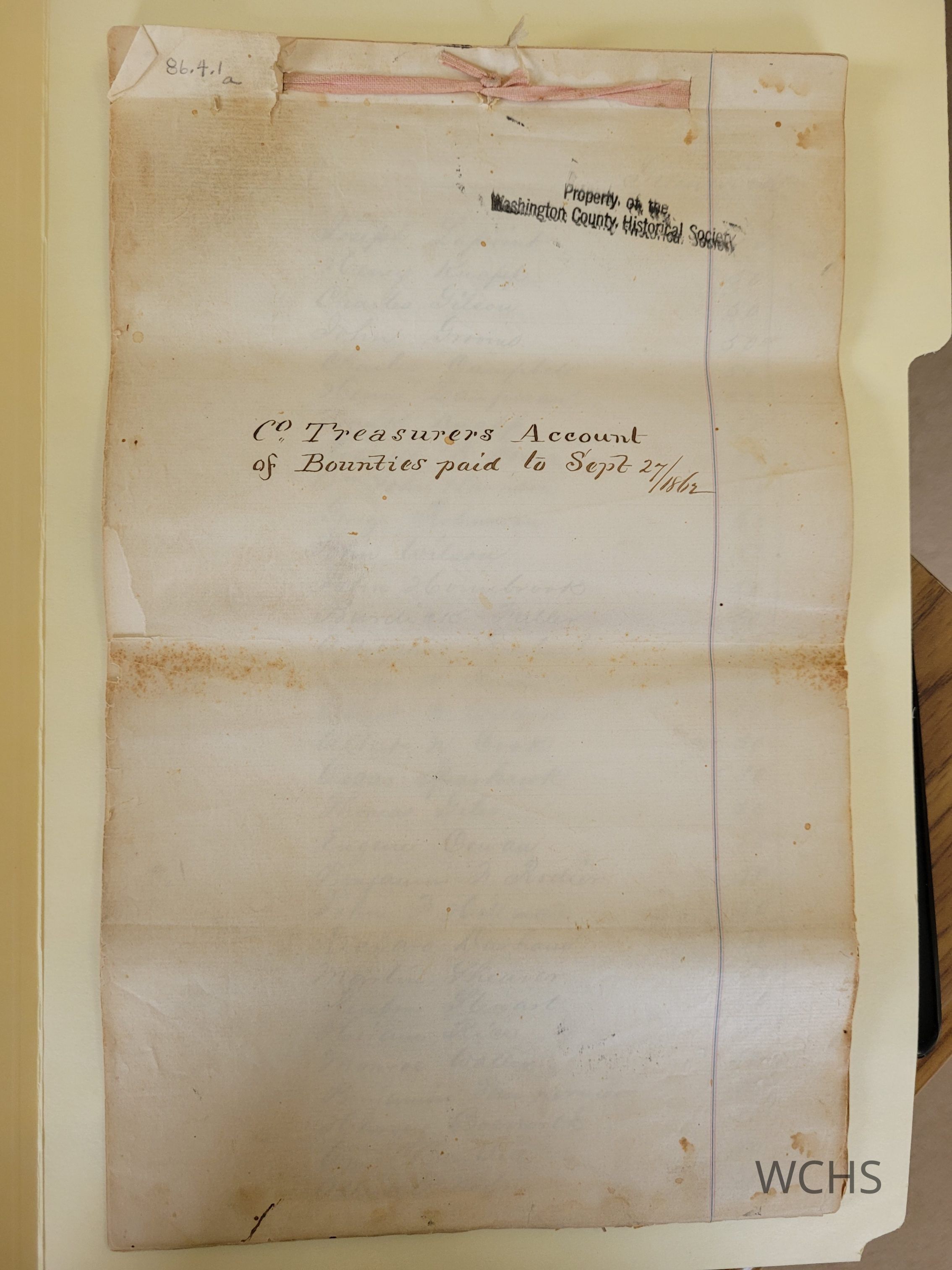 County Treasurers Account of Bounties paid to Civil War Soldiers September 27, 1862Entry/Object ID