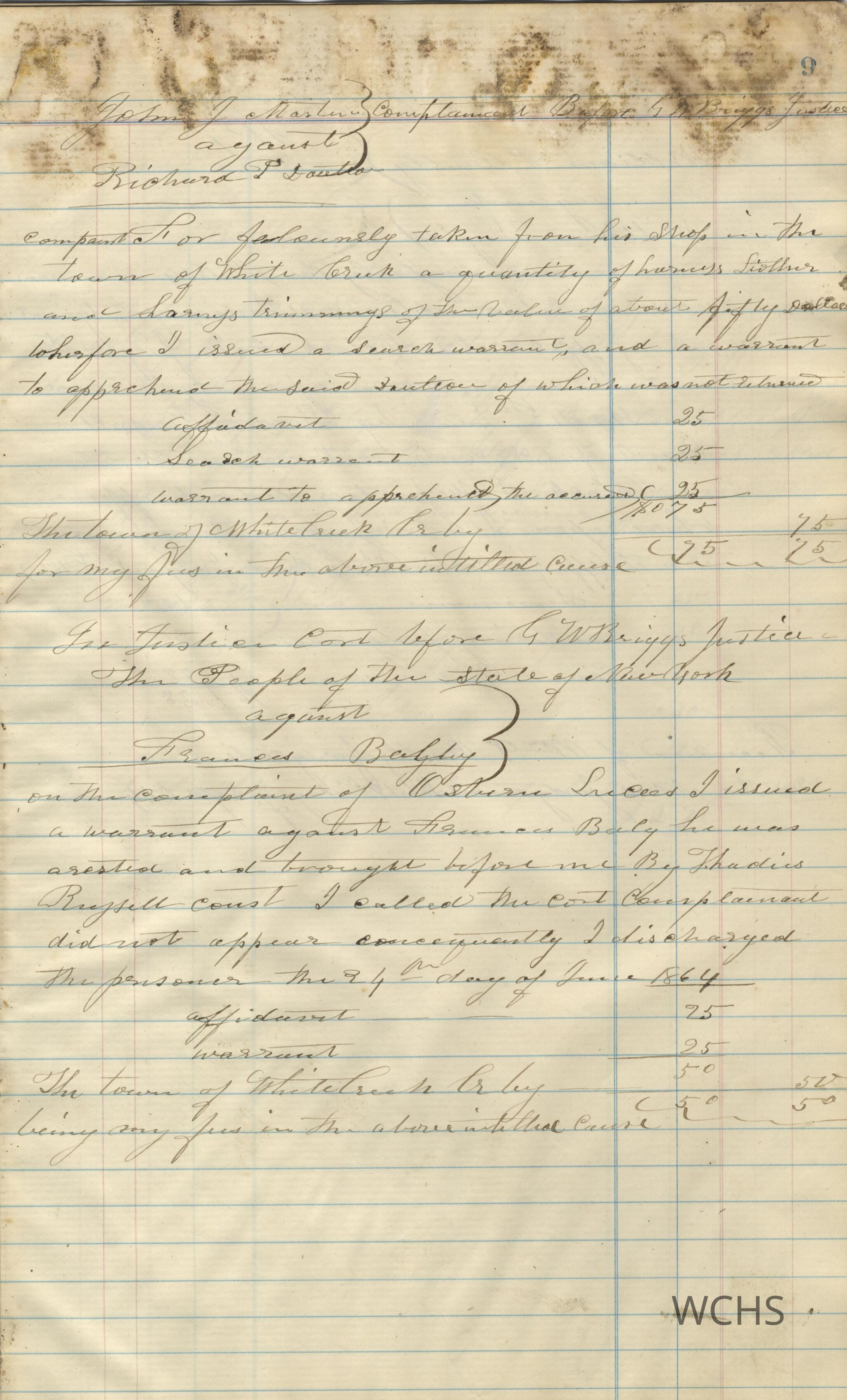 George W. Briggs, Justice of the Peace, Records Ledger 1864-1866, White Creek, NY