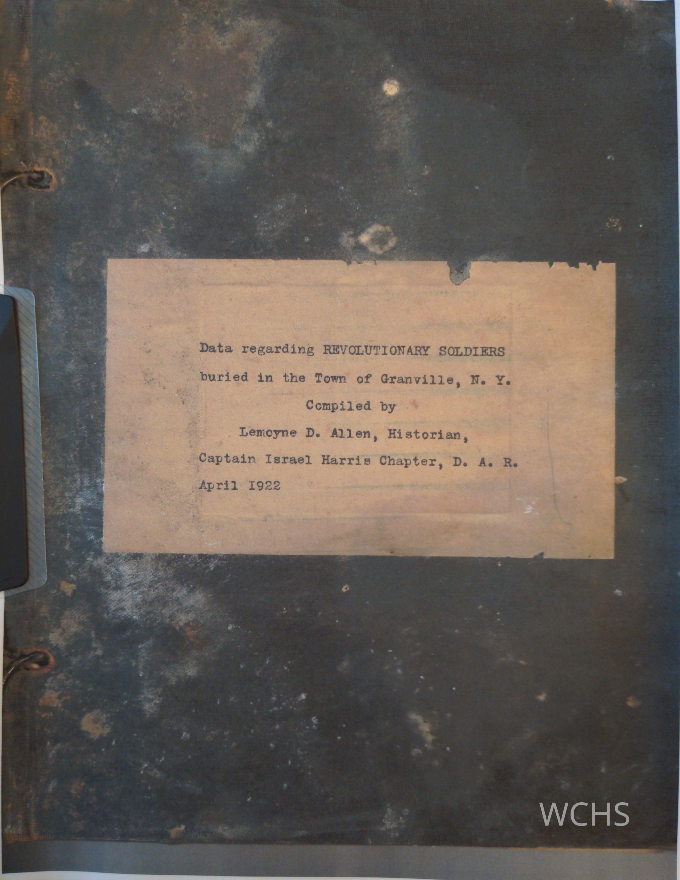Data Regarding Revolutionary Soldiers buried in the Town of Granville, N.Y.Entry/Object ID