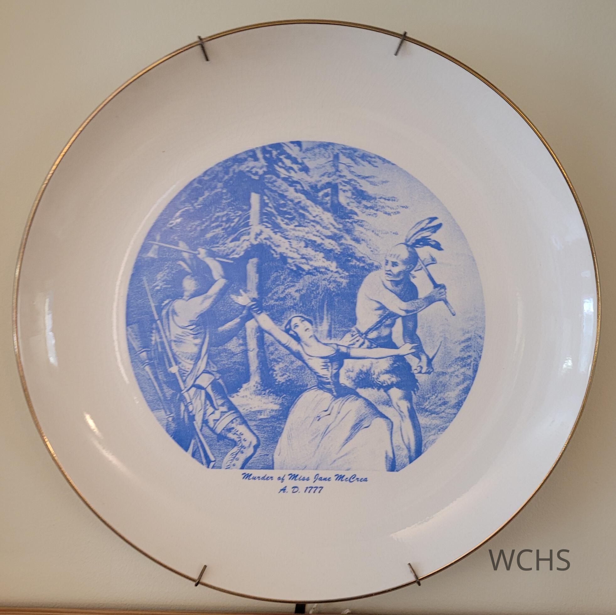 Decorative plate depicting the murder of Miss Jane McCrea, A.D. 1777