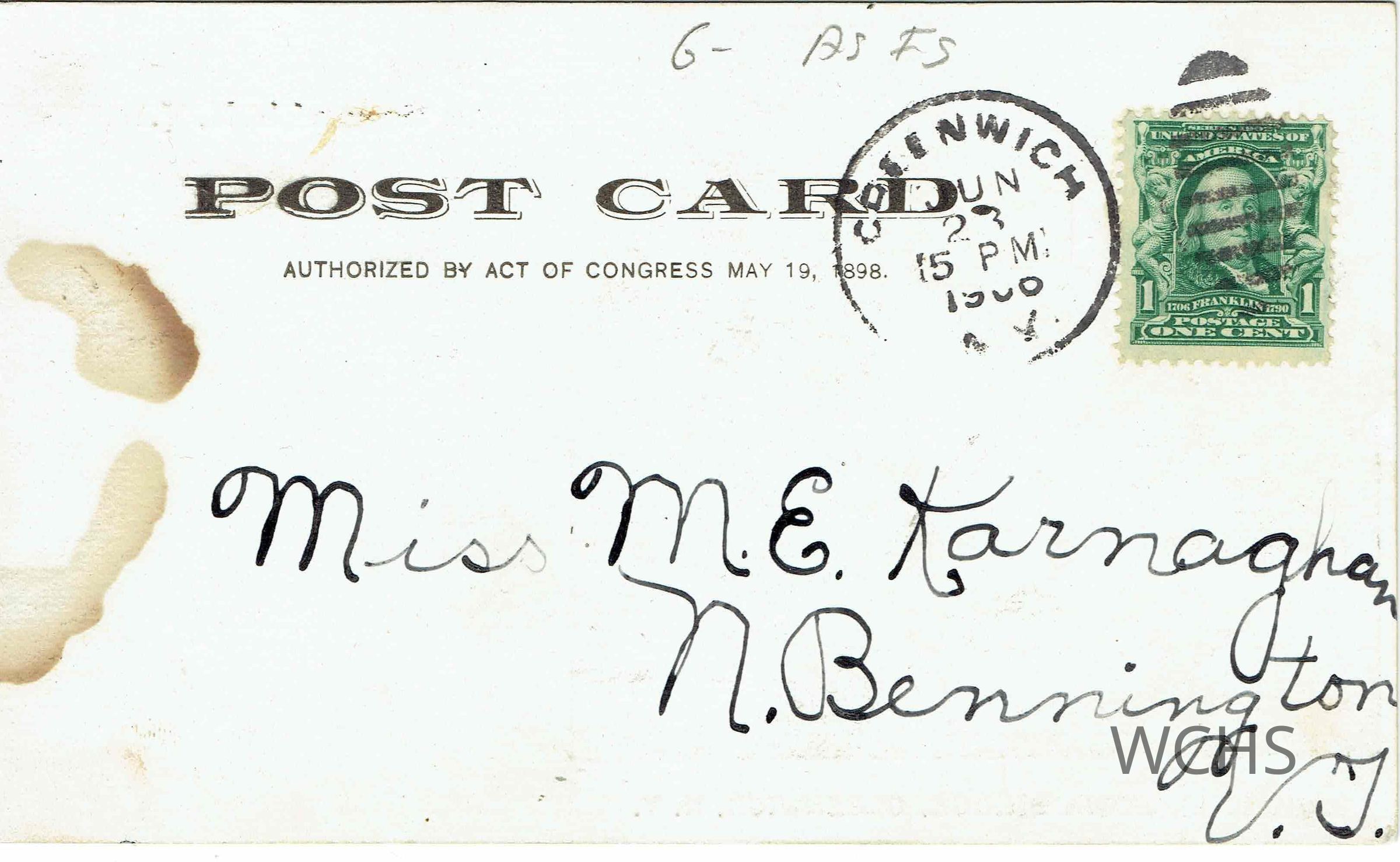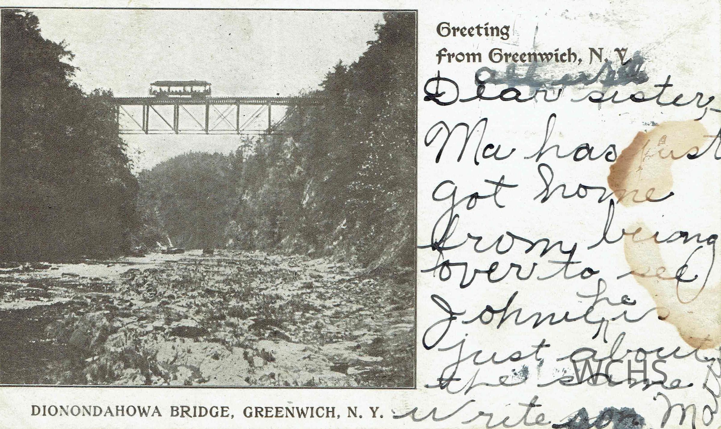 1900 postcard showing Dionondahowa Bridge with trolley crossing the Battenkill.