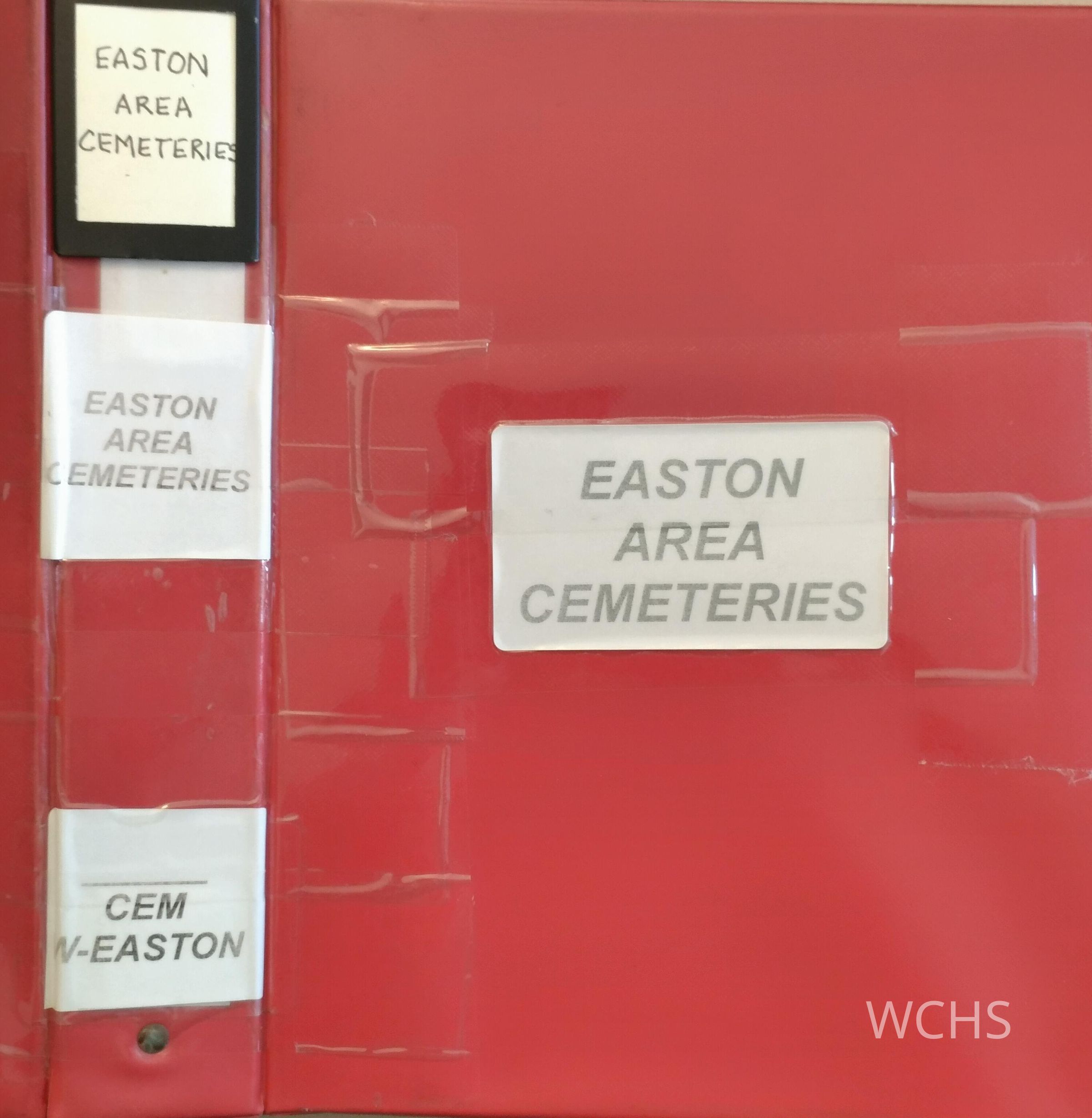 -lists each cemetery separately, but alphabetically within. contains epitaphs in some cases. paged by groups, illus., red looseleaf notebook