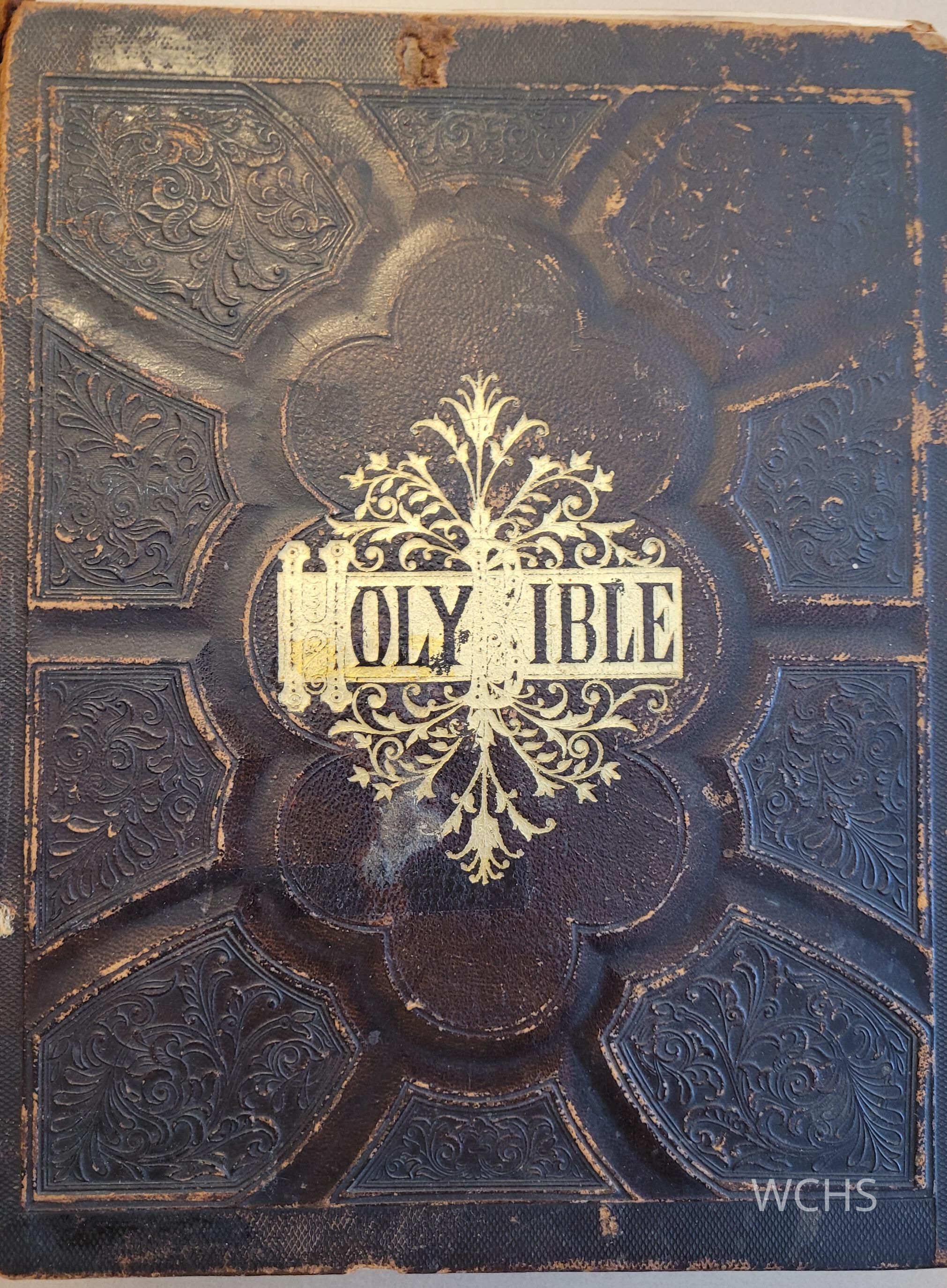 A family bible from the Liddle family of Jackson. Family births and deaths written inside with a variety of photographs, newspaper clippings and other papers.