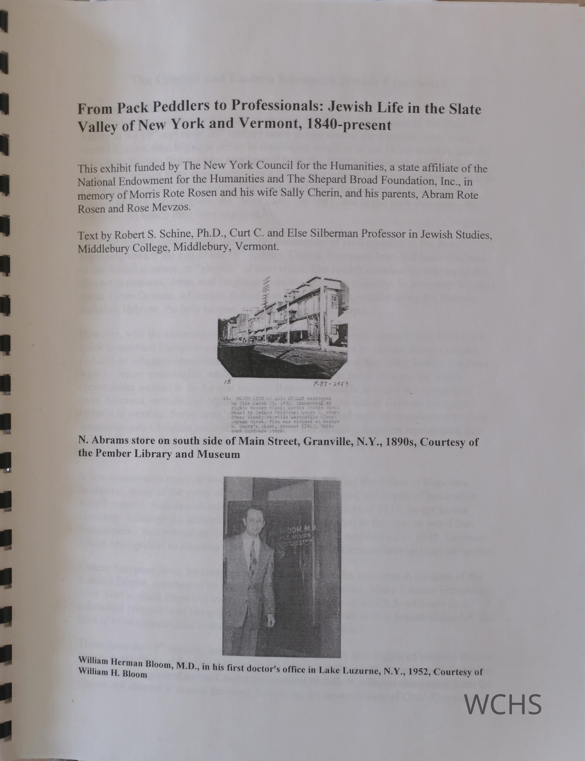 From Pack Peddlers To Professionals: Jewish Life In the Slate Valley Of New York and Vermont, 1840-Present and Text of the ExhibitEntry/Object ID