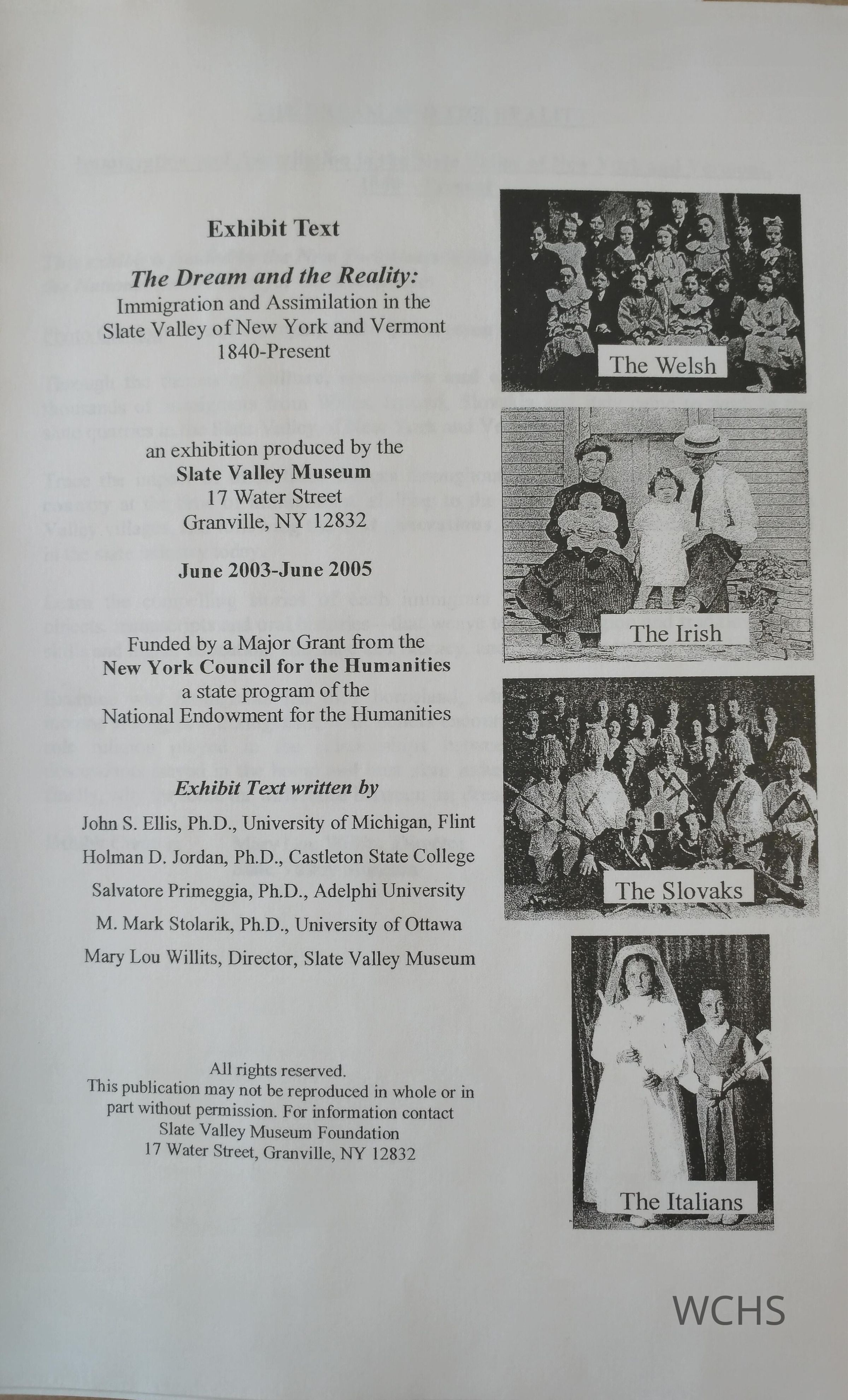 Slate Valley Museum exhibit featuring Early Jewish and other minority families of Granville, NY. In memory of Morris Rote Rosen, his wife Sally Cherin, and his parents, Abram Rote Rosen and Rose Mevzos.Publication Details